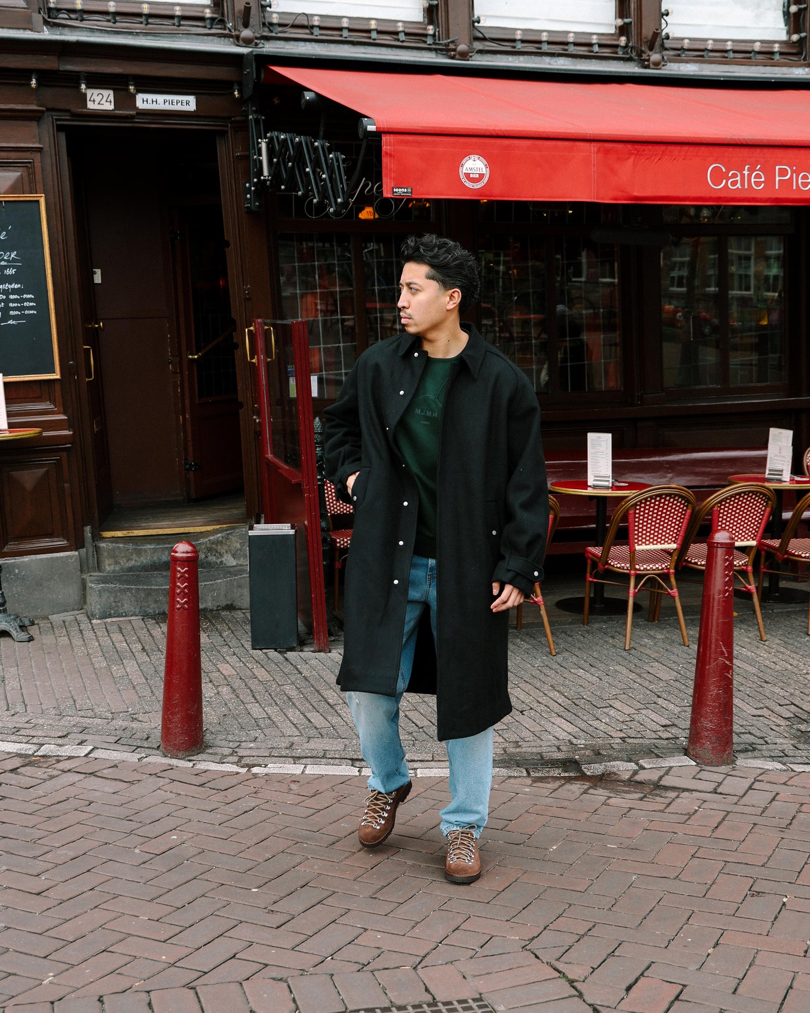 Here, history meets modern city life, and the city is best experienced cruising the canals or enjoying a few drinks by the water. The pieces are easy to wear and feature a color palette from soft grey to deep green and black, reflecting the canal across all seasons.