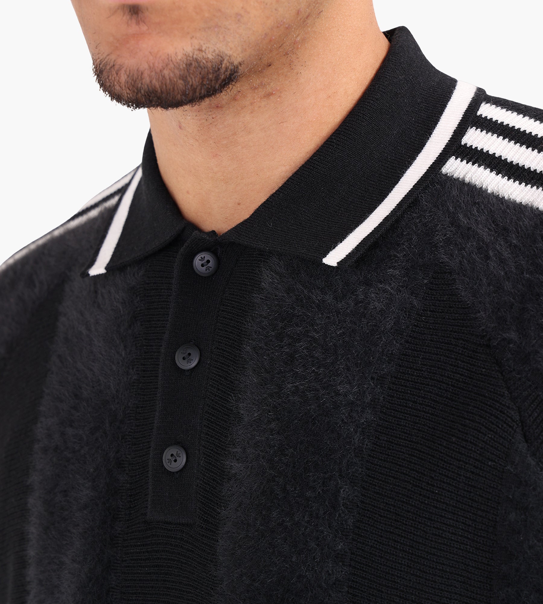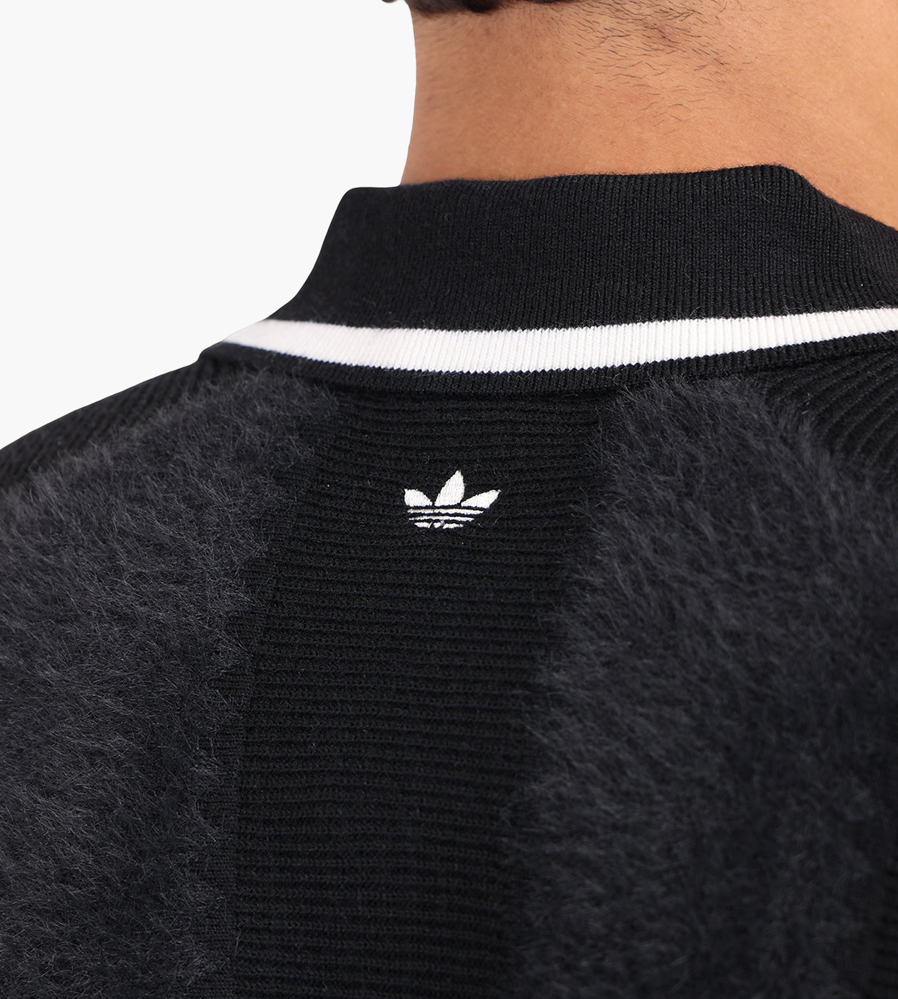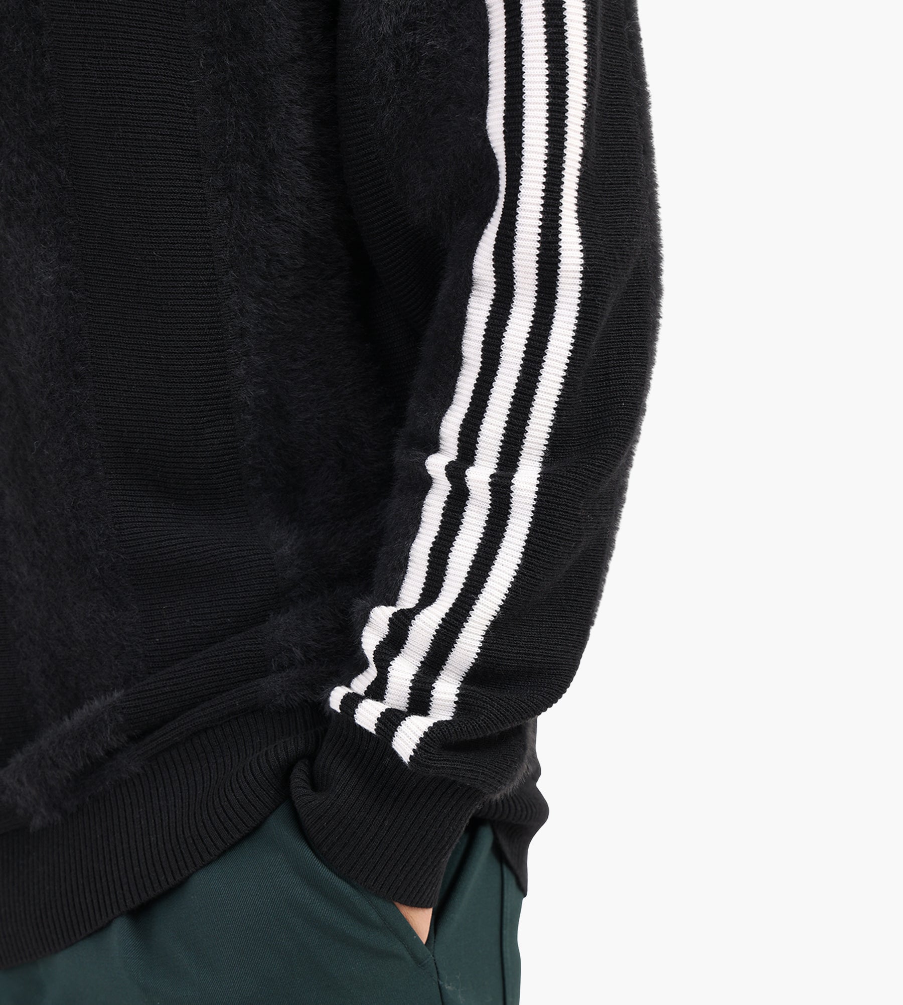 Adidas' knitted jersey in black offers a refined take on classic knitwear, blending a soft yet structured texture with a timeless silhouette. The knit construction provides natural insulation, making it an excellent choice for cooler days or as a layering piece under outerwear. Its deep black hue enhances versatility, pairing effortlessly with a range of wardrobe staples.