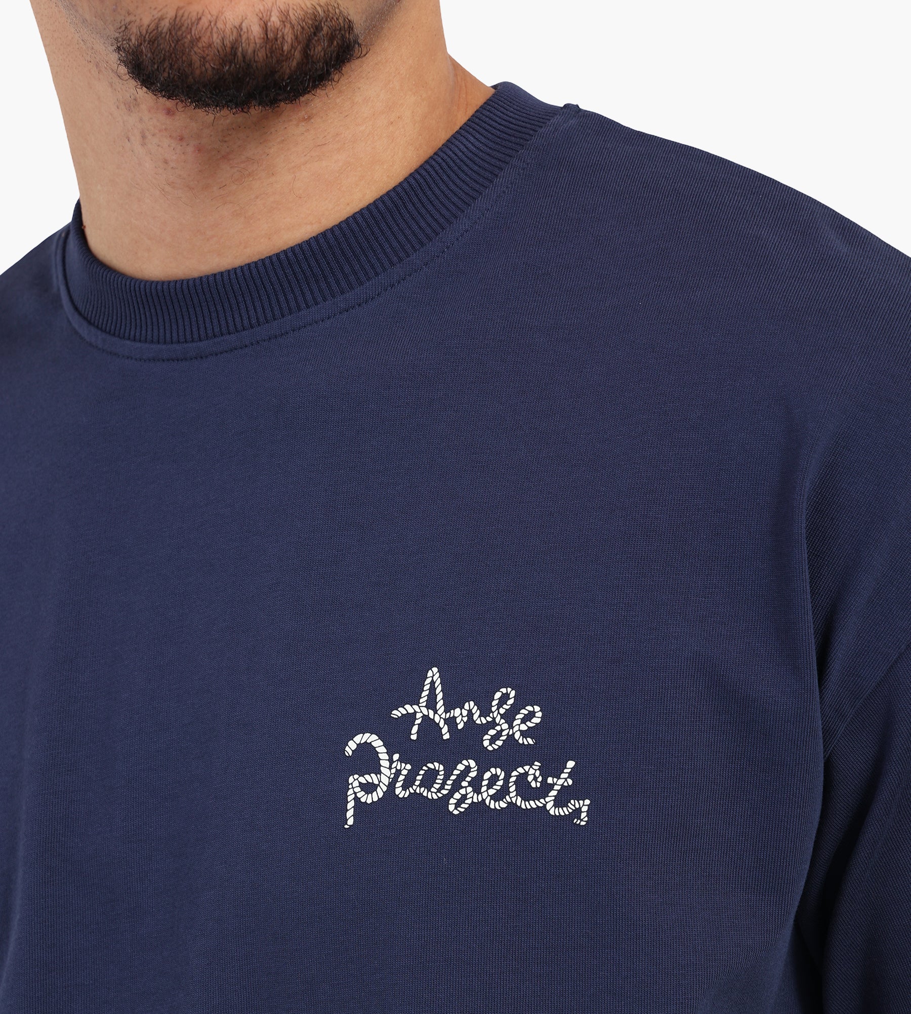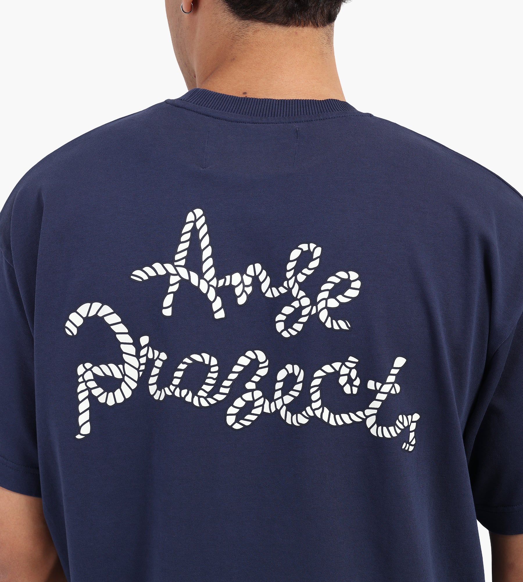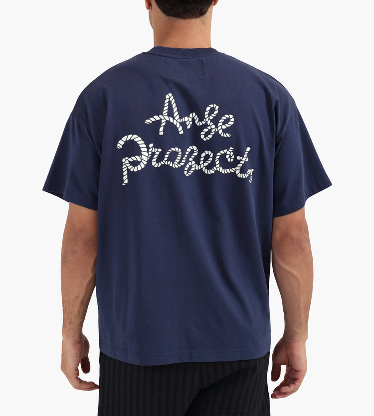 The Ange Projects Rope Tee in Navy is crafted from premium cotton, offering a soft yet durable foundation for everyday wear. The deep navy tone evokes a sense of understated refinement, suitable for both casual and elevated settings.