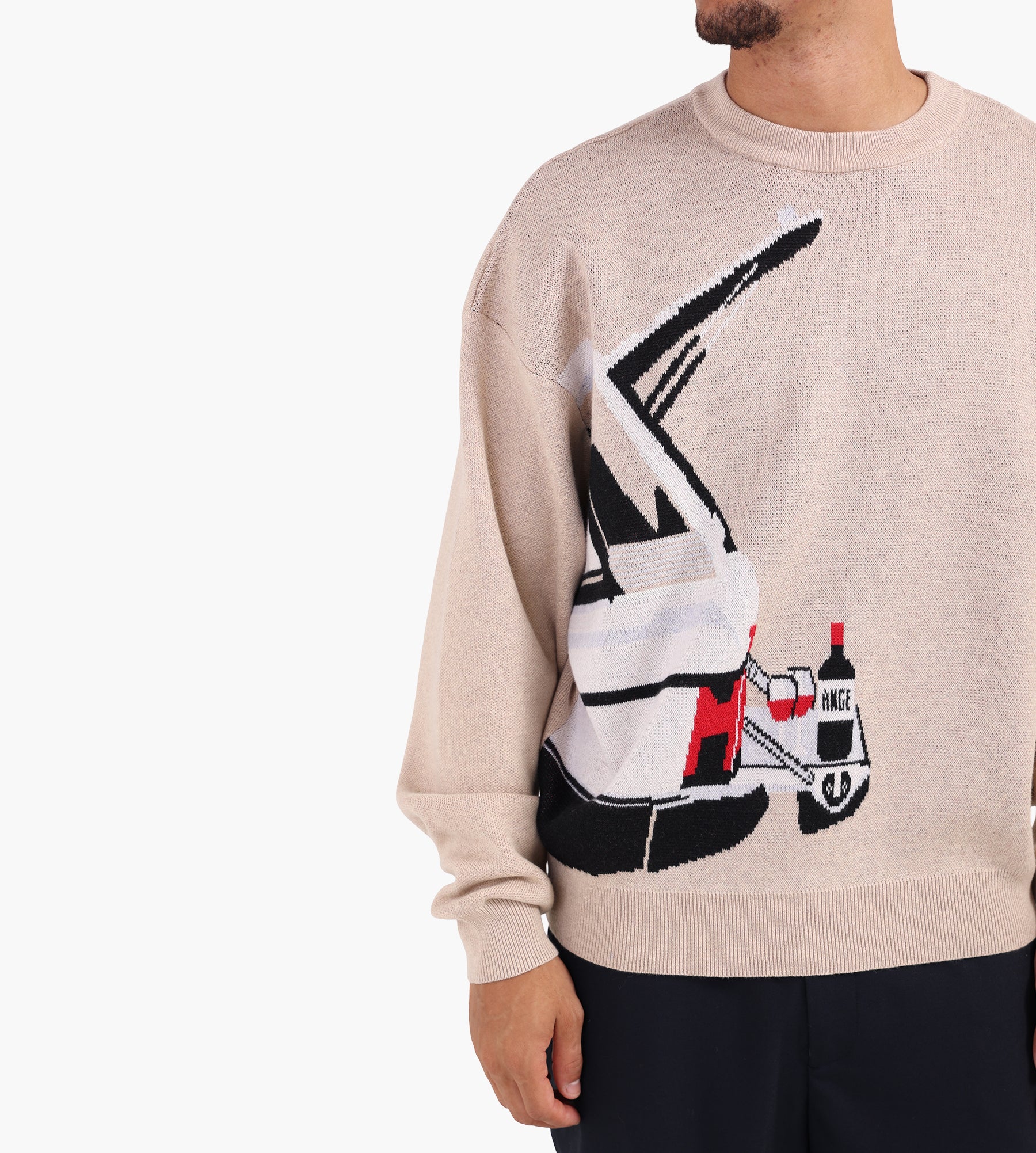The Ange Projects Wine Drive Knit Sweater in Sand is constructed from 100% cotton, delivering natural breathability and a soft hand feel. With a midweight 250 gsm construction, this sweater balances comfort and durability, making it a versatile layer for any season. The ribbed neckline enhances structural integrity, while the embroidered logo at the front adds a refined, minimalist touch.