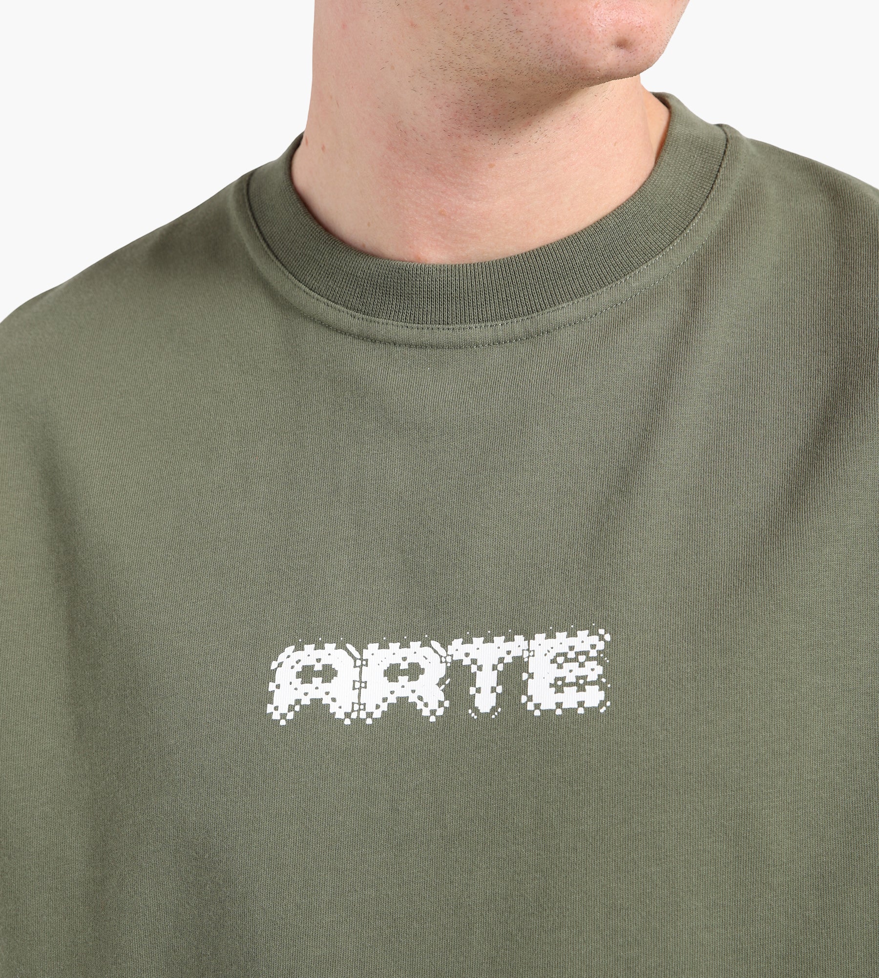 The Arte Antwerp Pixel T-Shirt in green is crafted from premium cotton, offering a soft, breathable foundation for everyday wear. Its standout feature is the pixelated graphic across the chest, a nod to Arte Antwerp's modern design ethos, blending bold visuals with understated utility.