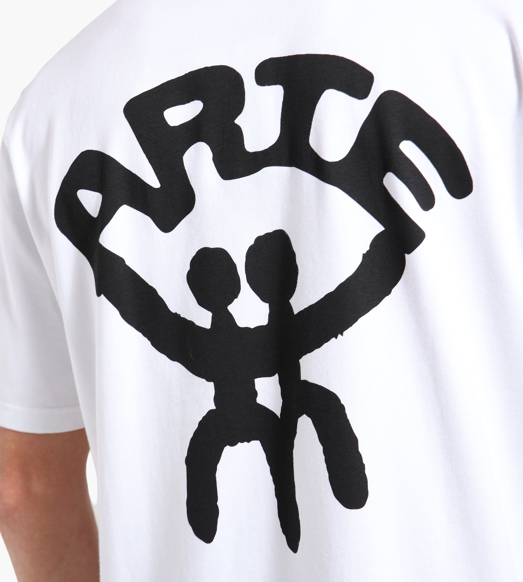 The Arte Antwerp Duo Print Logo T-Shirt in White is crafted from premium heavyweight cotton, offering a structured yet breathable feel. A blue and pink graphic, screen-printed on the chest, introduces a bold visual contrast, while the clean white base enhances its versatility for layering or standalone wear.
