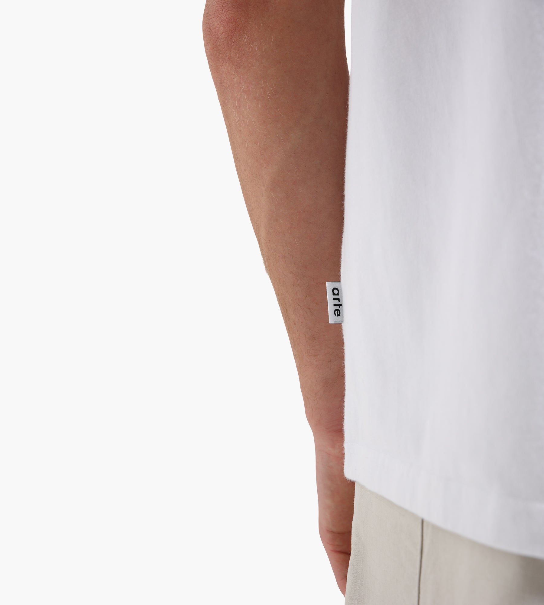 Arte Antwerp's Blocks Print T-Shirt in white is crafted from premium cotton for a soft, breathable feel. The minimalist silhouette is elevated by a bold graphic print on the chest, showcasing the brand's contemporary design ethos. A ribbed crew neckline ensures durability and a clean finish.