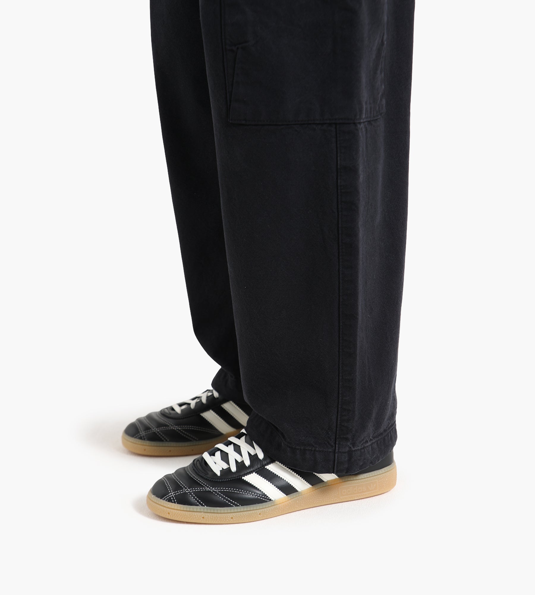 The Arte Antwerp Low Cargo Pants in black are crafted from a durable cotton blend, offering a balance of structure and comfort. Designed with a mid-weight fabric, these trousers feature cargo-style patch pockets that emphasize functionality while maintaining a streamlined silhouette.