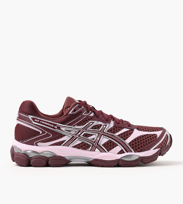 The ASICS GEL-CUMULUS 16 in Port Royal/Port Royal blends glossy synthetic leather overlays, no-sew paneling, and open mesh underlays for a dynamic yet breathable upper. Its technical aesthetic reflects the advanced design of 2010s running shoes, offering a sleek nod to performance heritage.