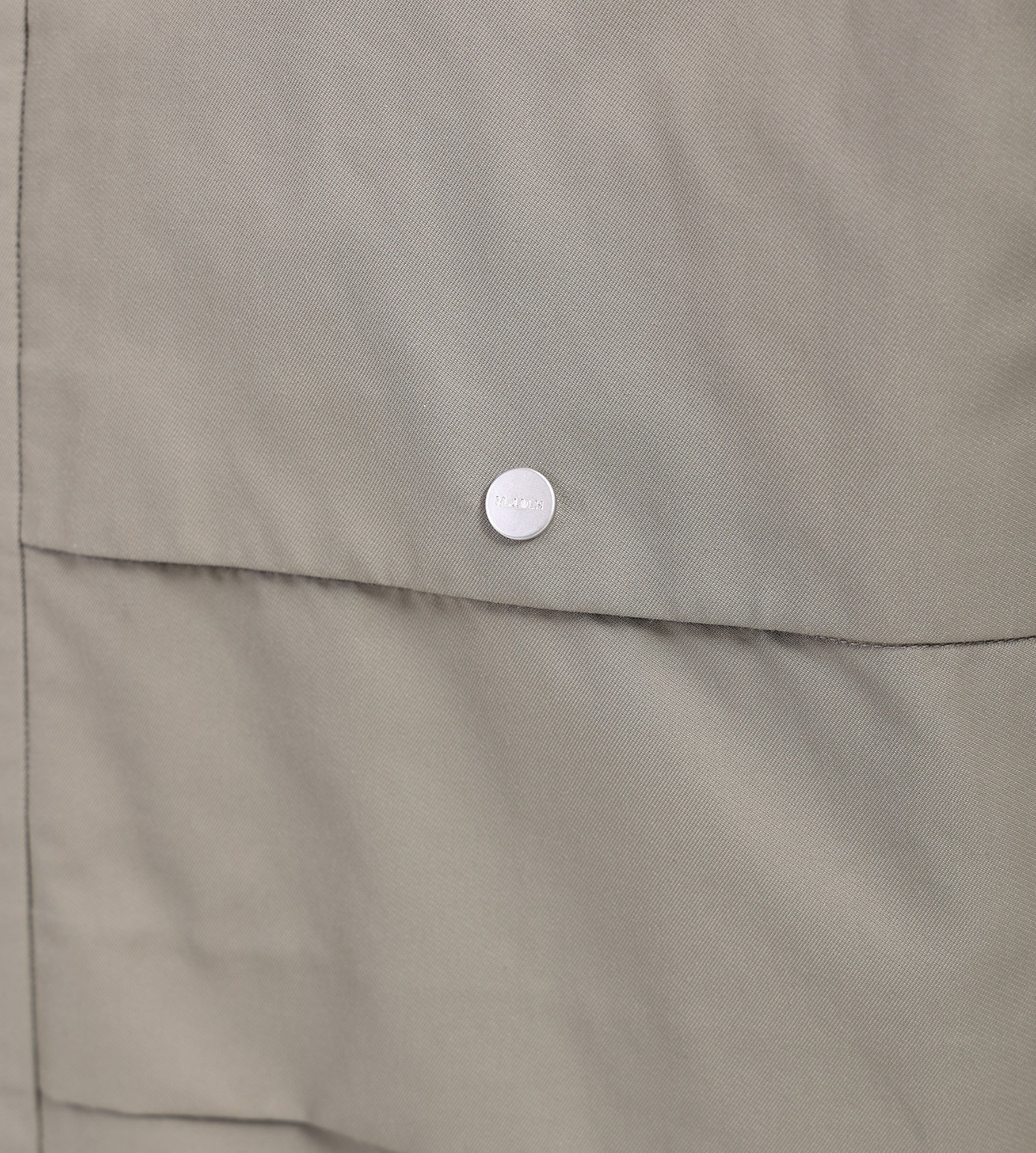 Designed with a relaxed fit, it transitions seamlessly from casual outings to refined settings. Branded snap buttons and a single chest pocket enhance its utility, while the muted gray tone complements versatile styling.