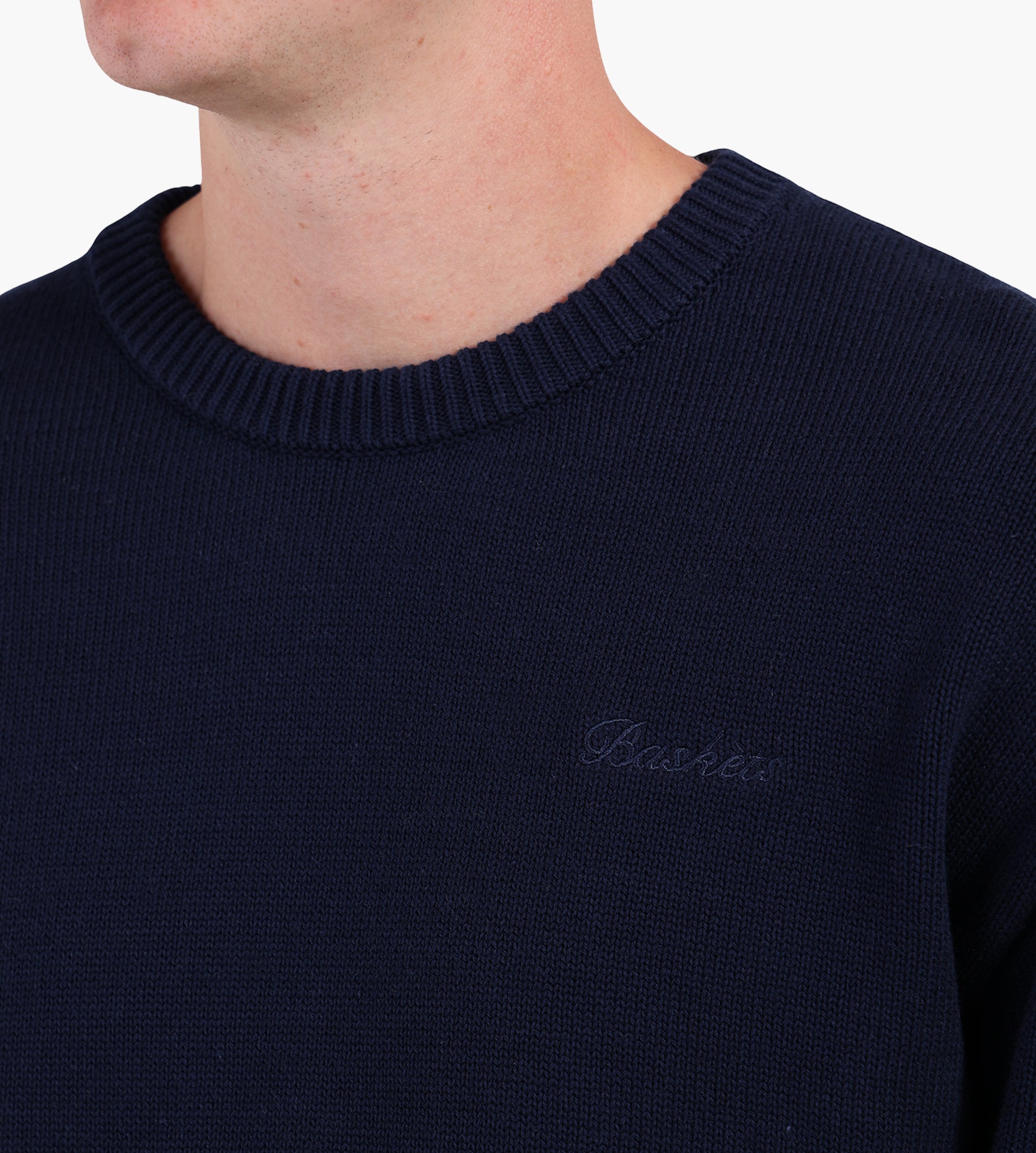 Baskèts Modern Script Knit Crewneck Deep Marine