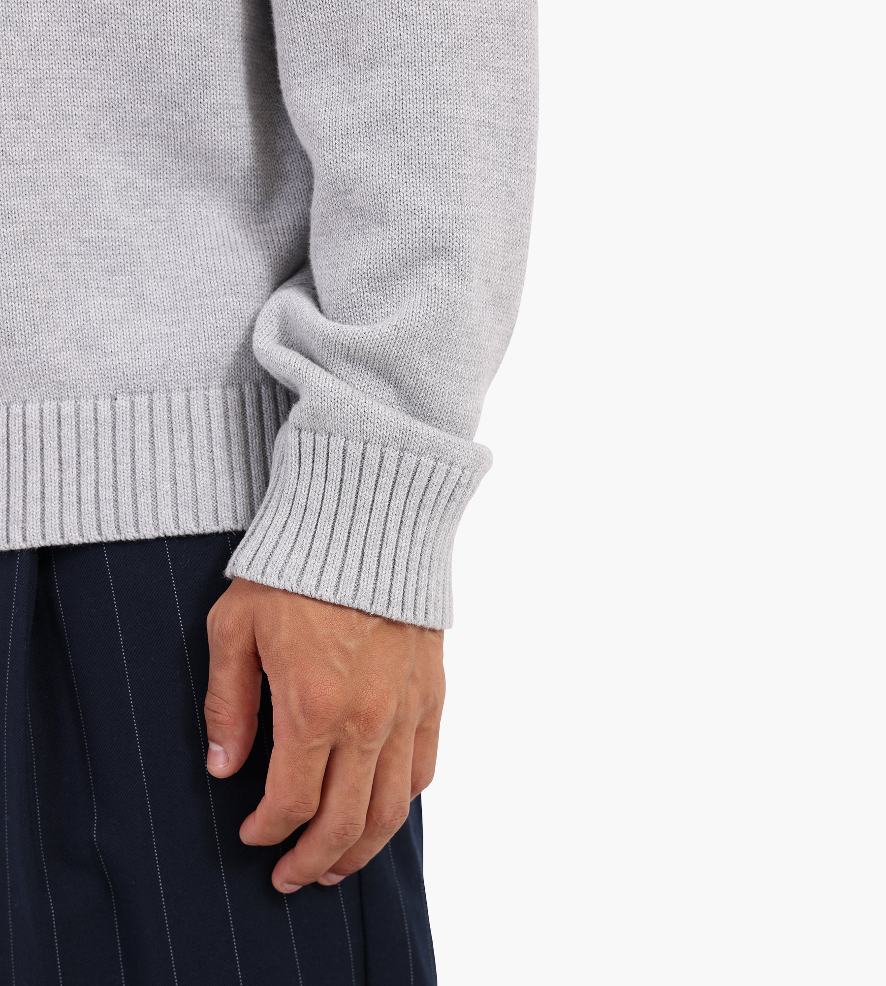 The Baskèts Modern Script Knit Crewneck in Ash Grey is a relaxed cotton knit designed for everyday wear. It’s detailed with an embroidered logo on the chest for a clean finish.