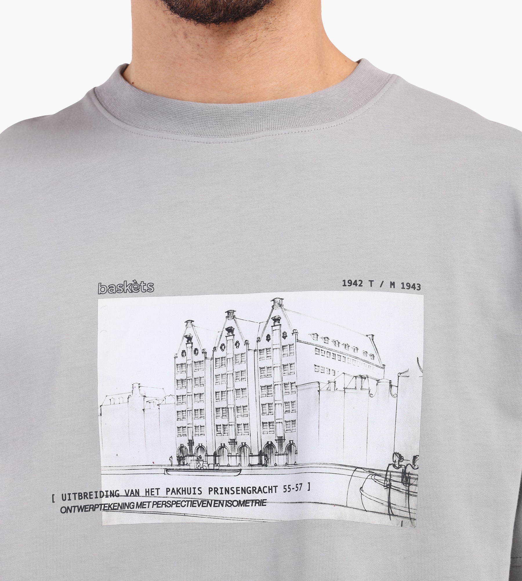 Inspired by the vibrant life along Amsterdam's Prinsengracht canal, this tee features seasonal printed artwork on the front, adding a subtle narrative to its minimalist aesthetic. The organic cotton's breathable properties make it a versatile staple for year-round wear.