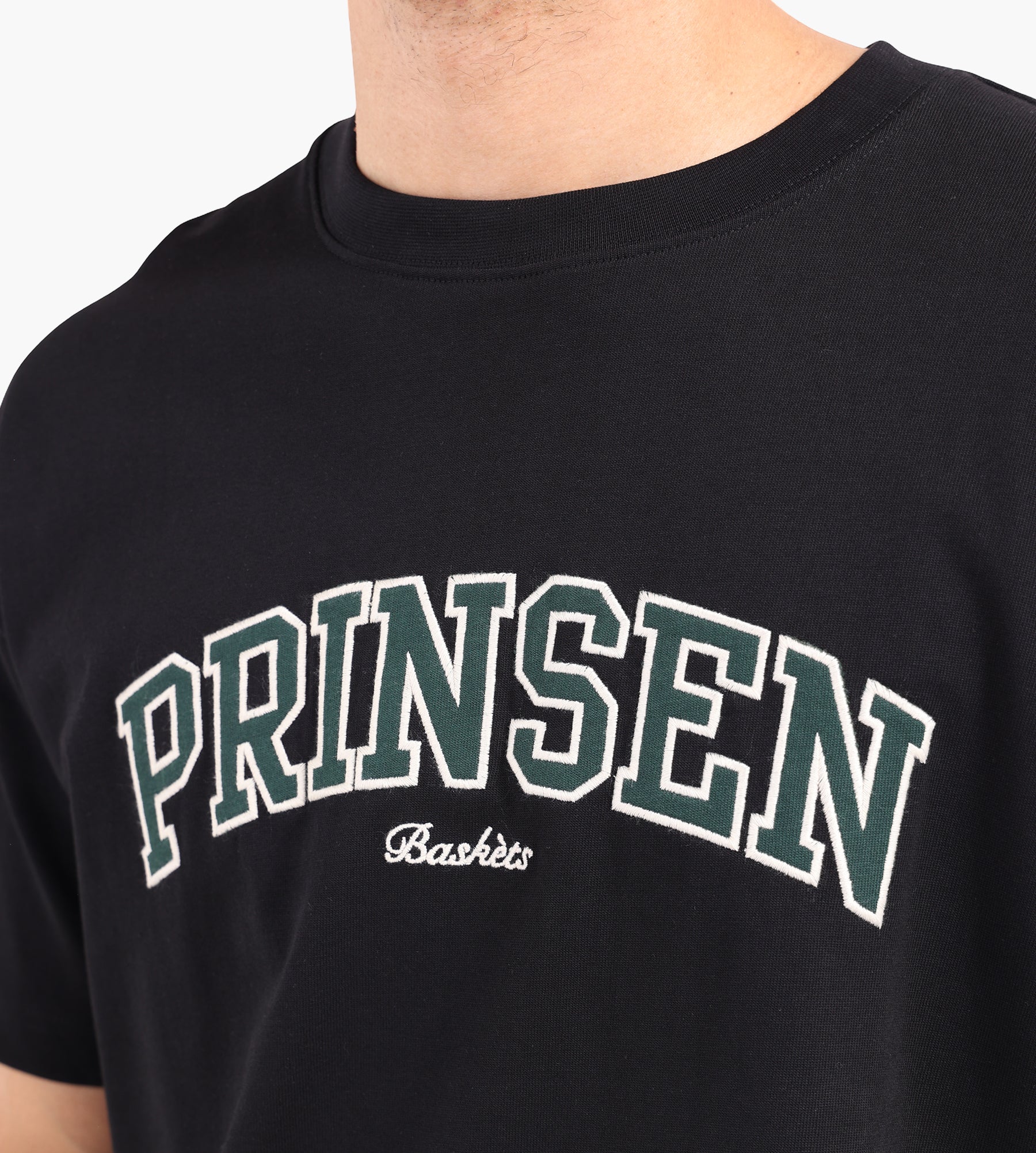 The Baskèts Prinsen Tee Black is crafted from 100% organic cotton, delivering a robust 260gsm fabric weight that feels substantial yet breathable. Its black base is accented by seasonal embroidered artwork, drawing inspiration from the rich cultural life along Amsterdam's Prinsengracht canal. This thoughtful detailing anchors the piece in Baskèts' design ethos, balancing timeless simplicity with a contemporary edge.