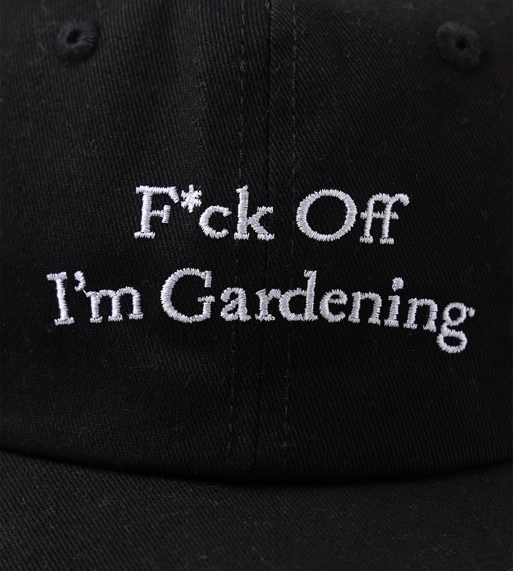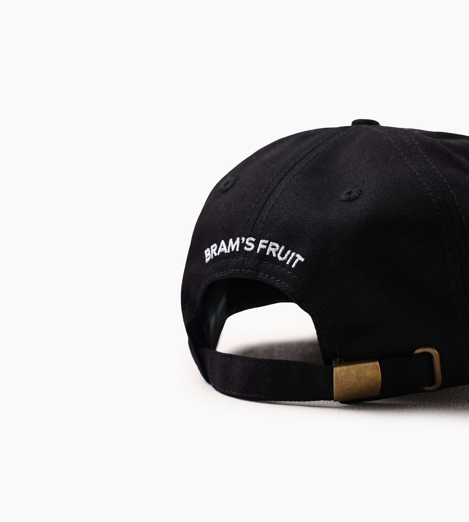 The Bram's Fruit "F*ck Off" Cap in Black is crafted from durable cotton twill, offering a structured yet breathable design. Its six-panel construction ensures a clean silhouette, while the tonal stitching enhances its minimalist aesthetic. The bold embroidered slogan on the front panel adds a touch of rebellious character.