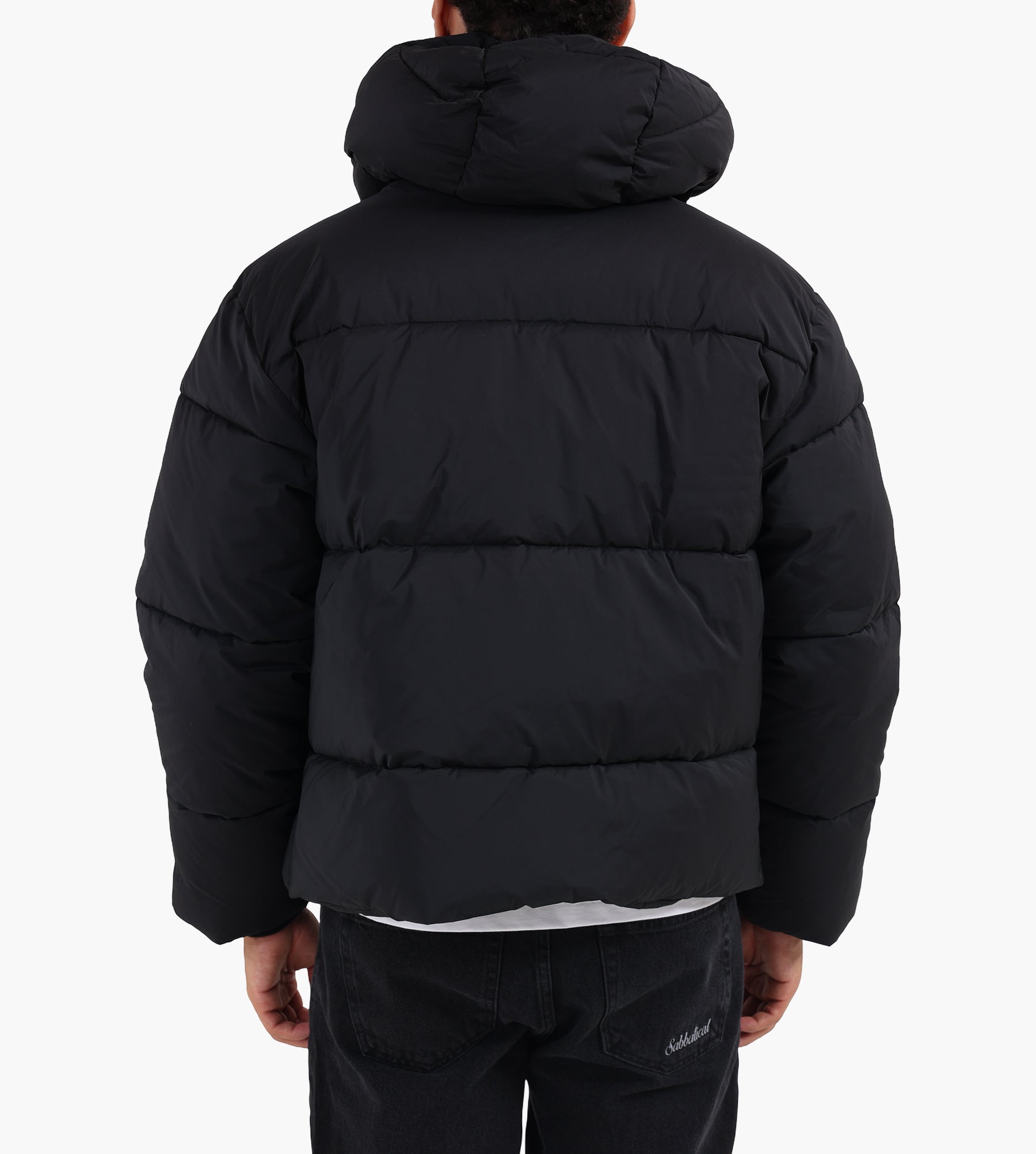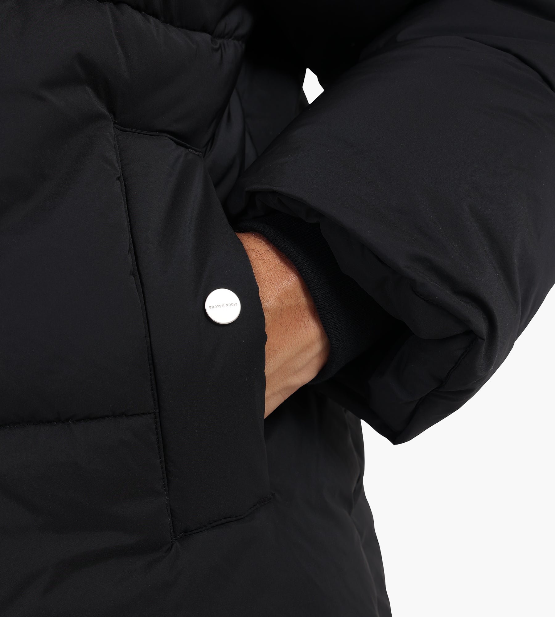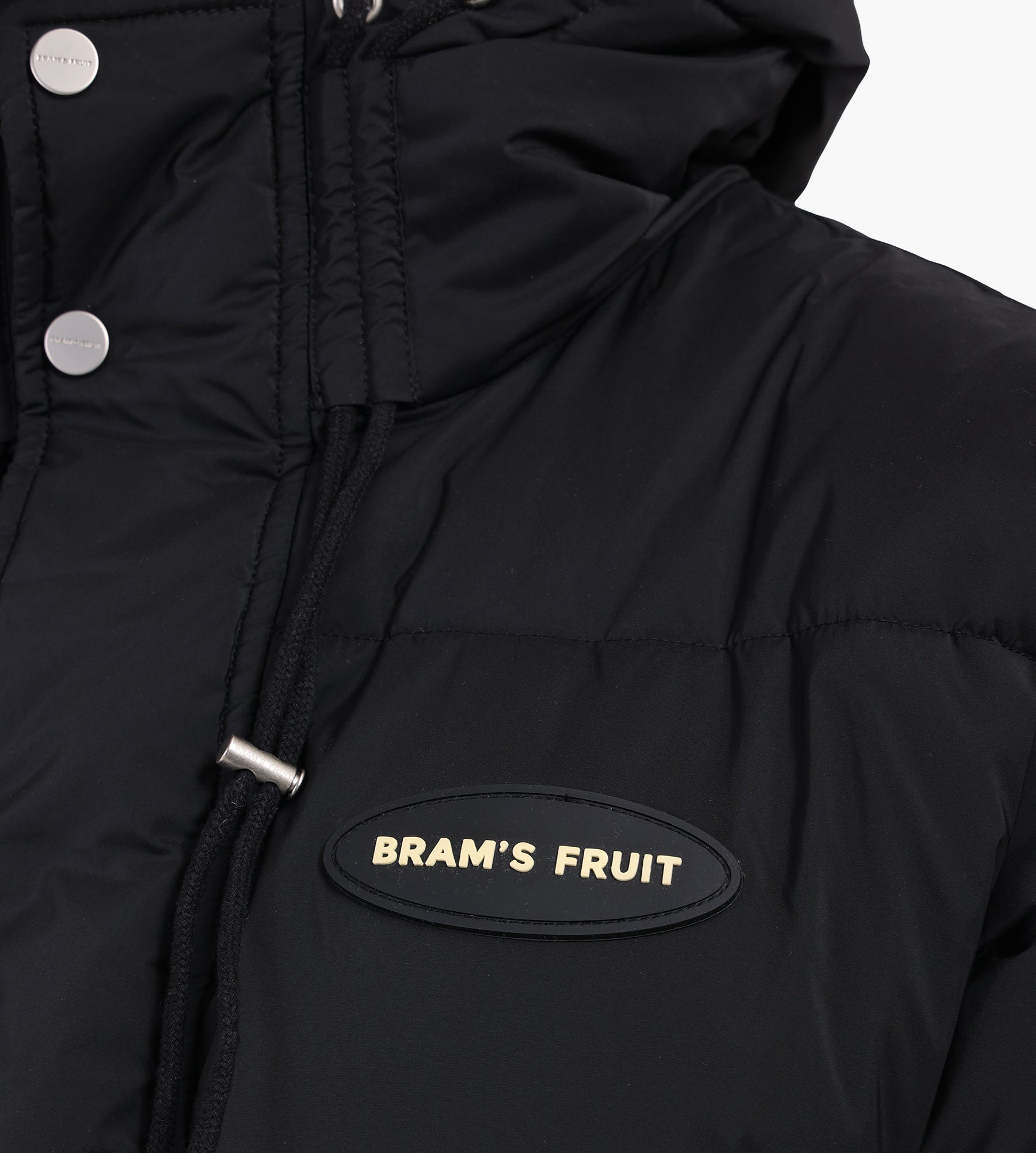 The Bram's Fruit Hooded Puffer Jacket in Black combines a sleek silhouette with cold-weather functionality. Engineered with a quilted construction, its insulated design traps warmth effectively, making it a reliable layer for winter conditions. The integrated hood enhances coverage, while the minimalist black finish ensures versatility across urban and outdoor settings.