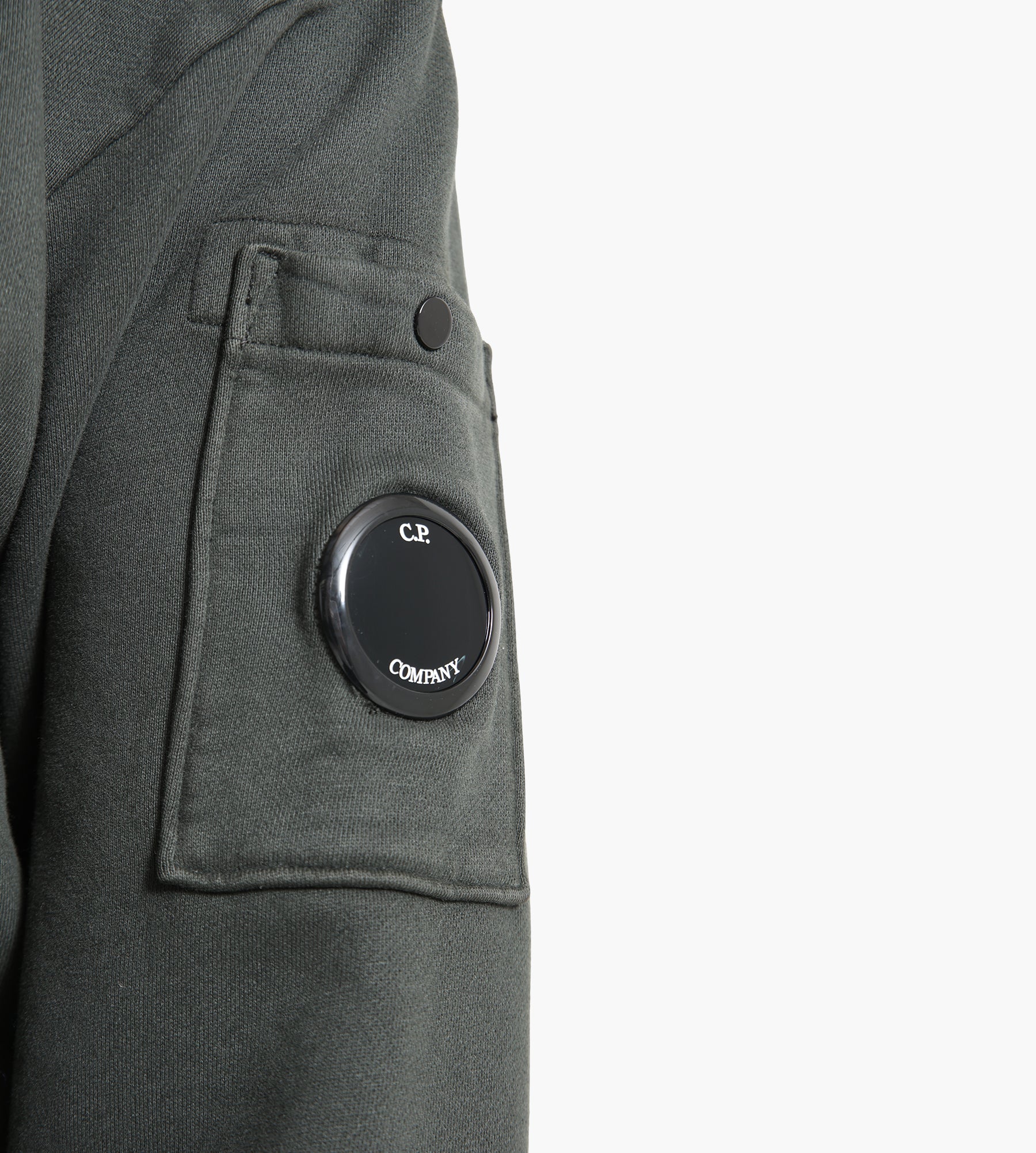 The C.P. Company Brushed and Emerized Diagonal Fleece Lens Crew Neck Sweatshirt, available in Black and Ivy Green, is crafted from 100% cotton with a brushed and emerized diagonal-weave gauzed fleece. This unique fabric offers a soft, textured hand while ensuring durability and comfort. A Resist Dyed process imparts a subtle, uneven finish, adding depth to the sweatshirt's minimalist design.