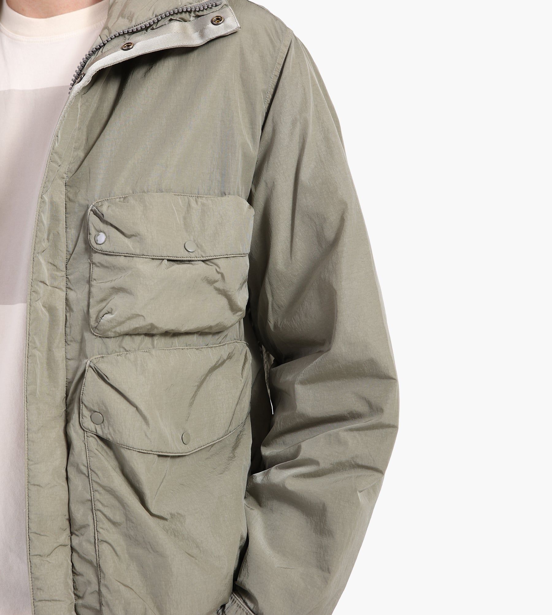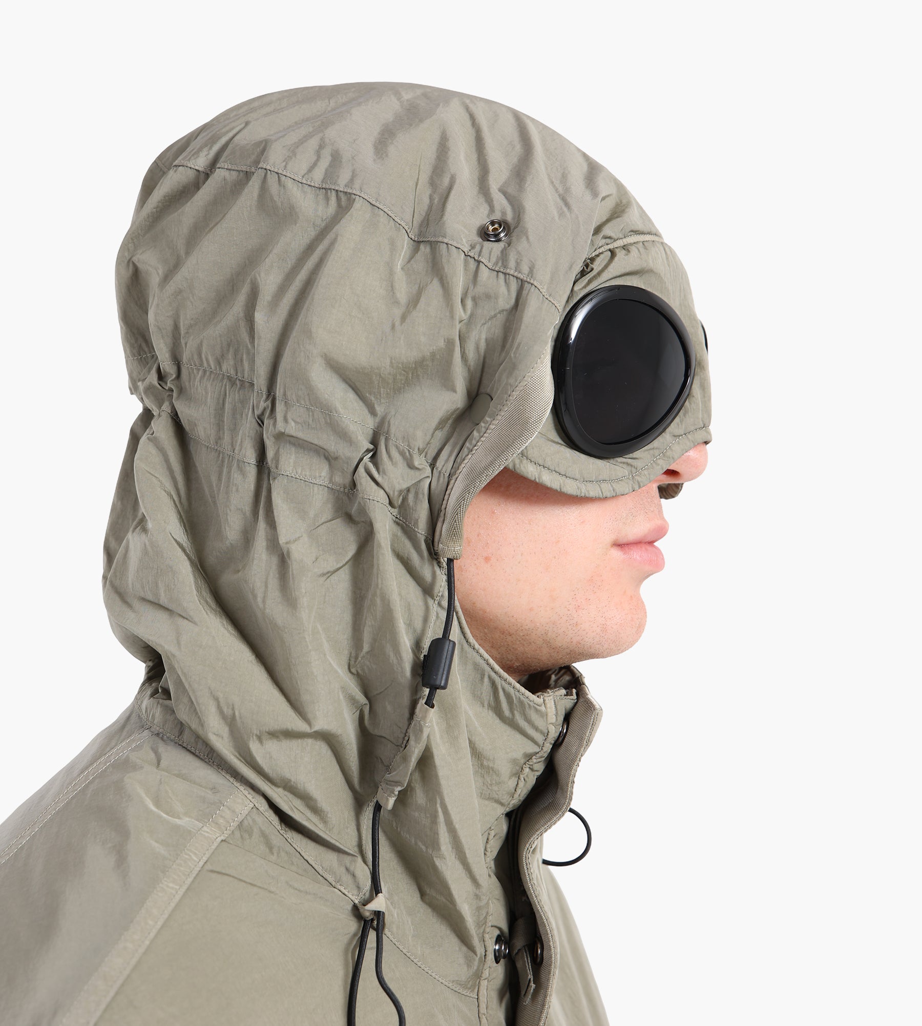 The C.P. Company Chrome-R Medium Jacket in Fallen Rock Green is crafted from 7-denier matte micro-ripstop nylon, a lightweight yet durable fabric that highlights the transparency of its construction. This technical material, originally developed for military use, ensures resilience and a modern aesthetic while keeping the jacket ultra-packable for dynamic urban or outdoor pursuits.