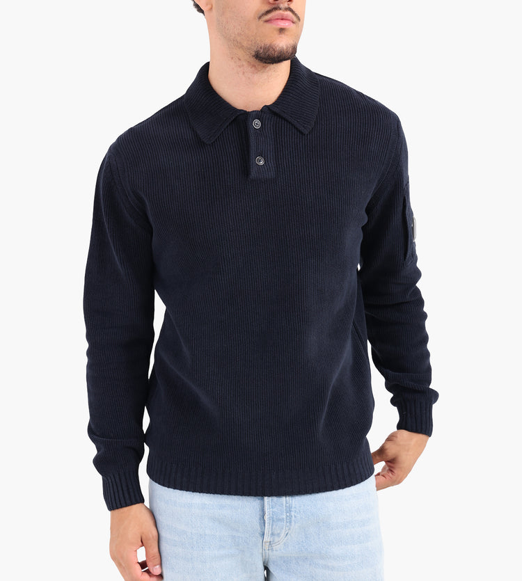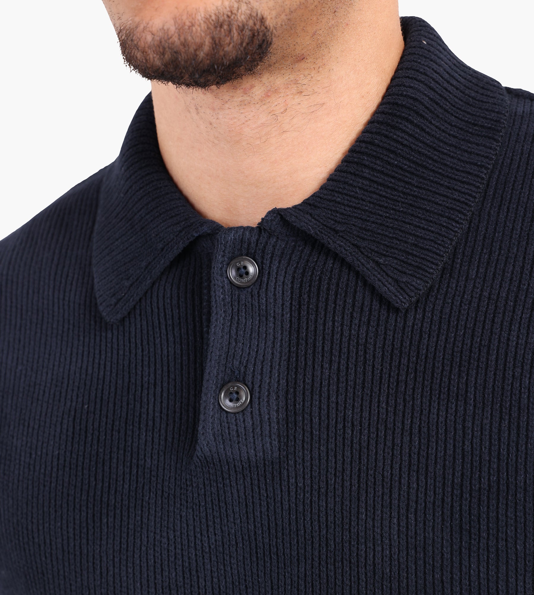 C.P. Company Knitwear Polo Collar In Chenille Cotton Total Eclipse