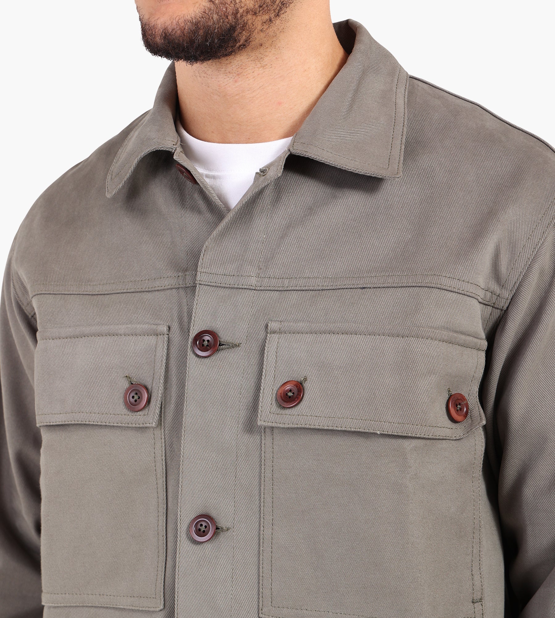 Café-Mountain Reverse Panel Workers Jacket Washed Moss