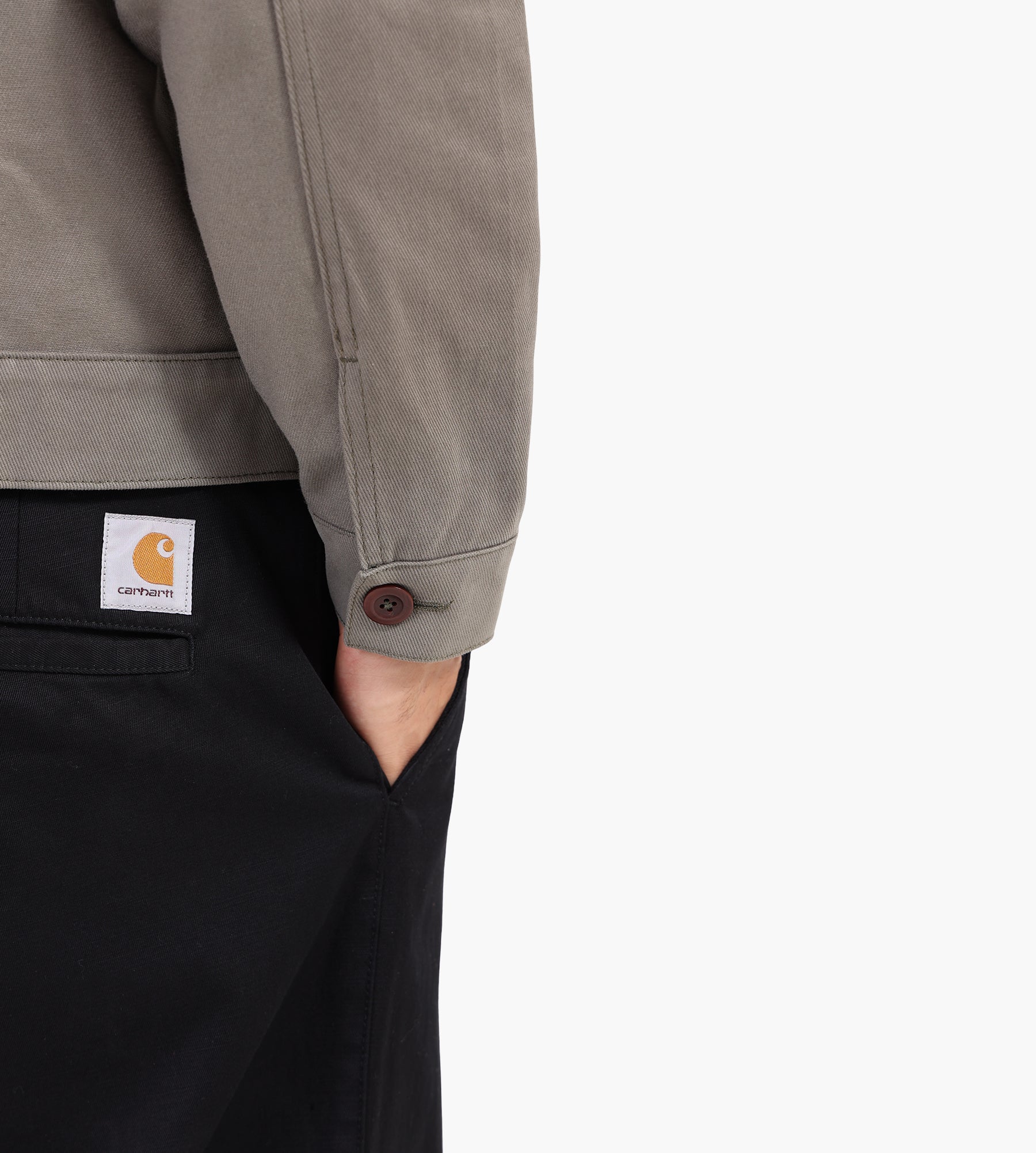 - Contrasting brushed cotton and twill panels