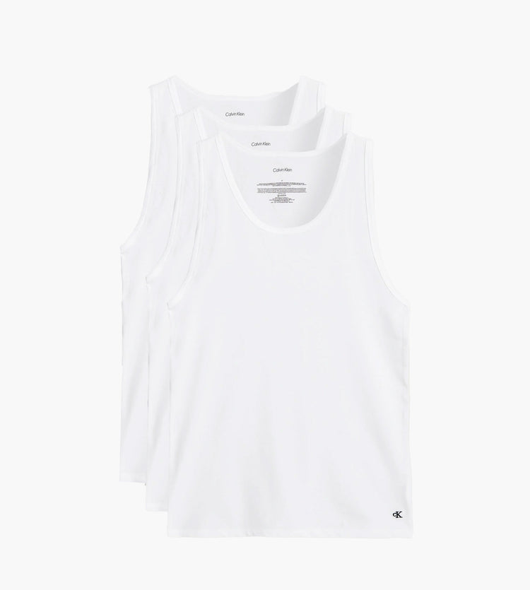 The Calvin Klein Men's 3-pack Tank Top in white is crafted from breathable cotton, offering a lightweight and comfortable base layer. The sleeveless design and classic crewneck ensure unrestricted movement and a clean, minimal profile.