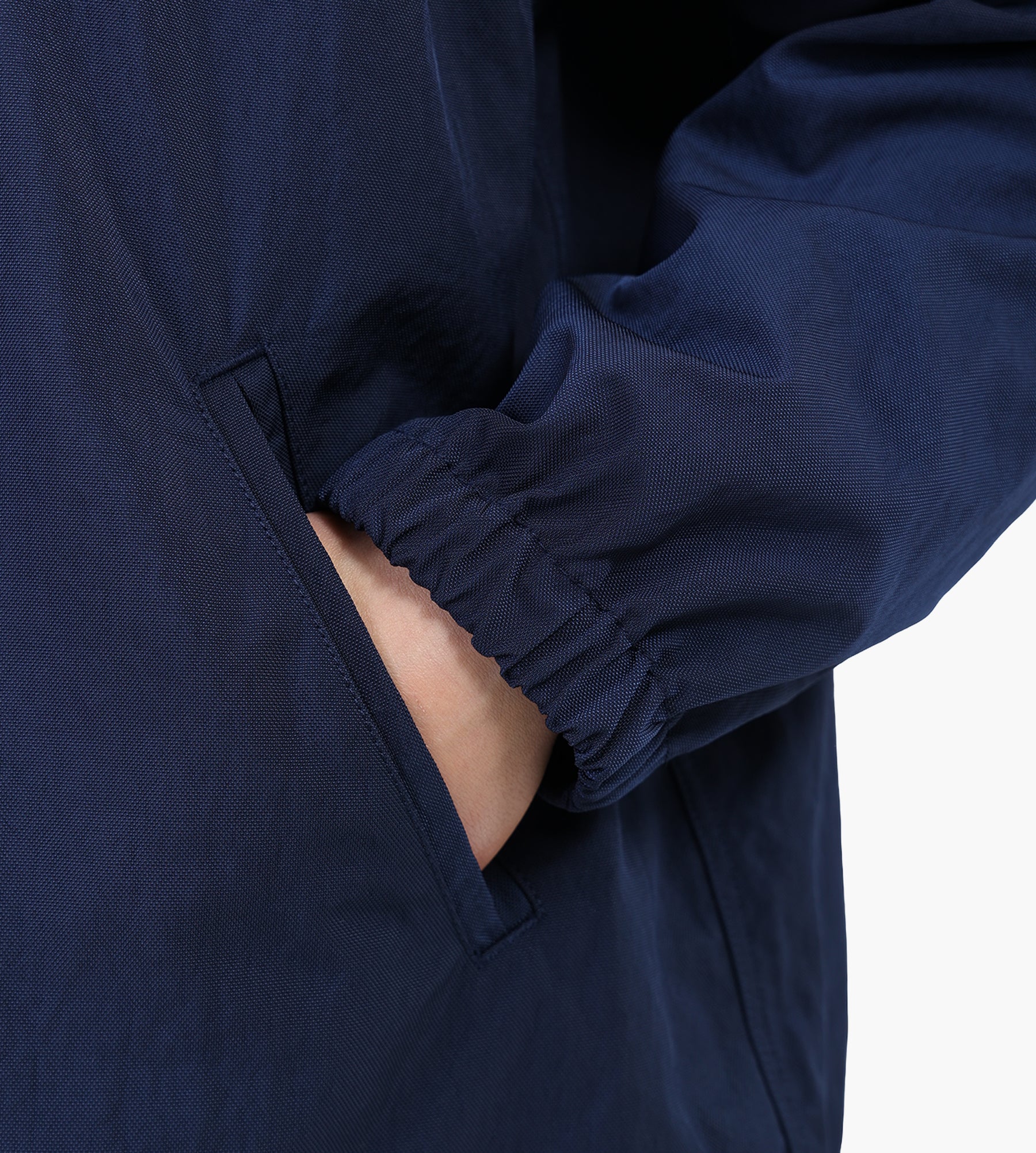 The Carhartt WIP Eighty-Nine Coach Jacket in Jupiter White is constructed from a lightweight yet durable synthetic blend, designed to provide a crisp and clean silhouette. Its snap-button front and pointed collar evoke classic athletic outerwear, while the minimal branding maintains a refined aesthetic.