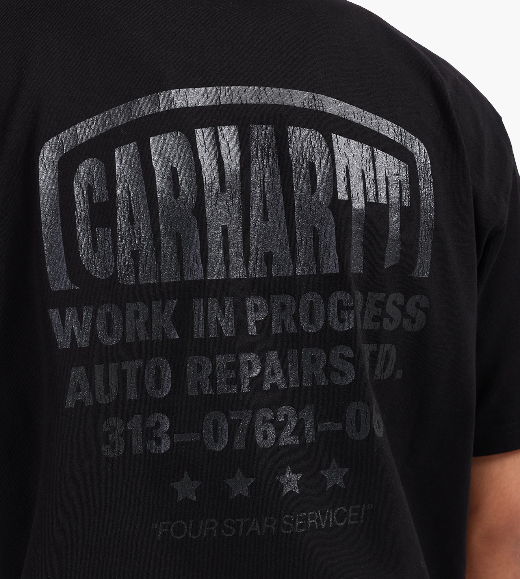 The Carhartt WIP Four Star T-Shirt in Black is crafted from premium cotton jersey, offering a soft yet durable foundation for all-day wear. Its clean black canvas is accented by a bold, graphic print that nods to the brand's utilitarian heritage while maintaining a modern edge.
