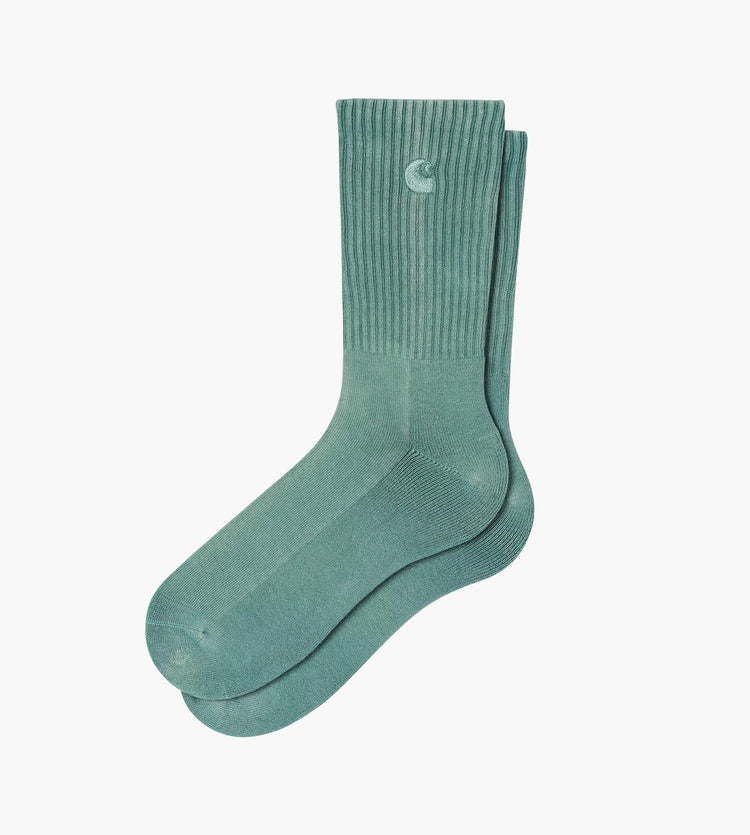 The Carhartt WIP Hudson Socks in Saguaro (Chalk Wash) bring a refined edge to everyday essentials, crafted from a stretch-cotton yarn blend for comfort and durability. A tie-dye treatment lends each pair a unique pattern, while ribbed ankles and an anatomic shape ensure a secure, contoured fit.