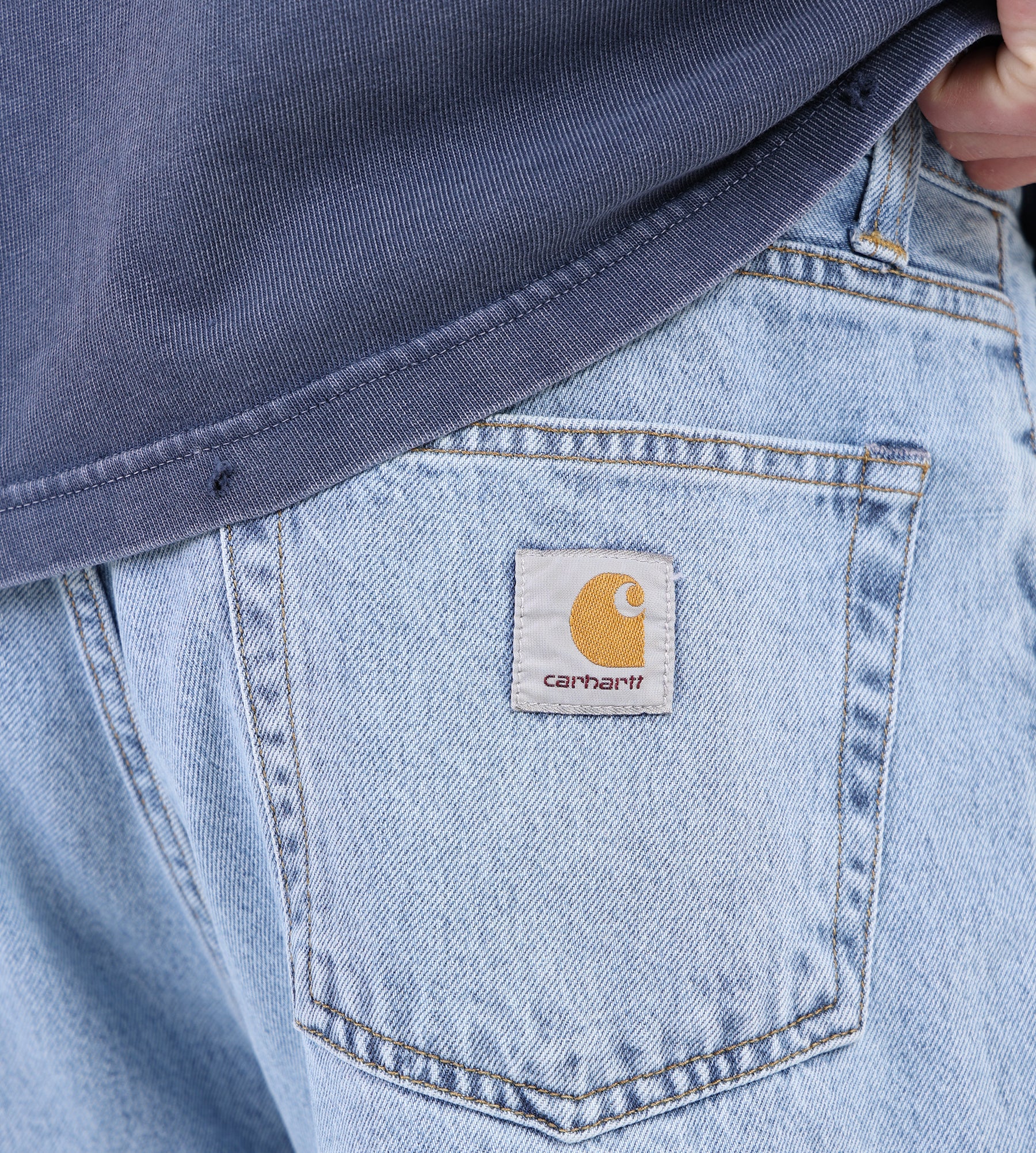 The Carhartt WIP Landon Pant in bleached blue is built from 100% cotton 'Robertson' denim, offering a sturdy 12 oz weight that balances durability with everyday comfort. Designed with a five-pocket style and reinforced bartack stitching at key stress points, these jeans are engineered for long-lasting wear.