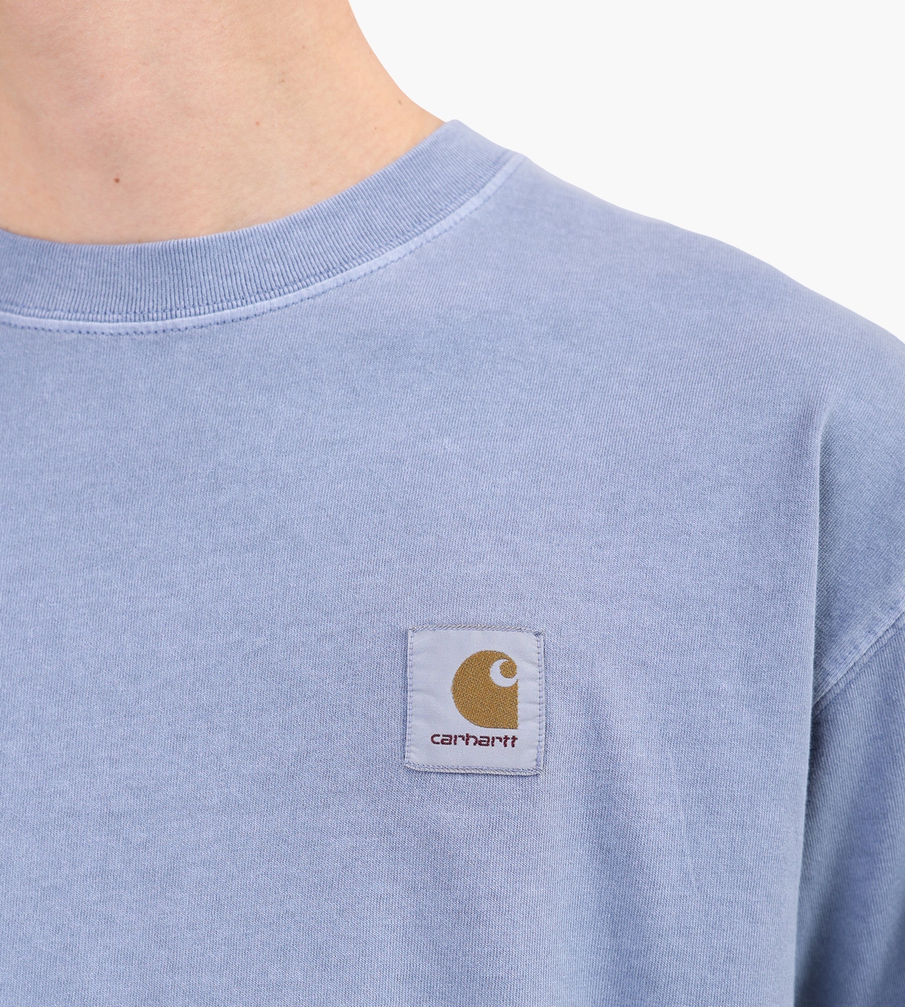 The Carhartt WIP Nelson T-Shirt in Gentle Blue is crafted from premium cotton and garment-dyed for a richly textured finish. This process enhances the fabric's softness while delivering a nuanced, lived-in color that deepens with wear.