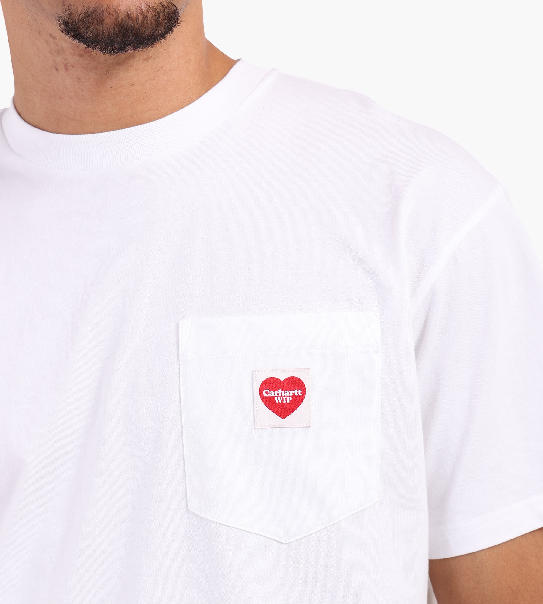 The Carhartt WIP S/S Pocket Heart T-Shirt in White/Red is crafted from 100% cotton, offering breathable comfort and durability. A classic crew neckline and short sleeves anchor its timeless design, while the chest pocket adds functionality with a subtle woven heart label for understated detail.