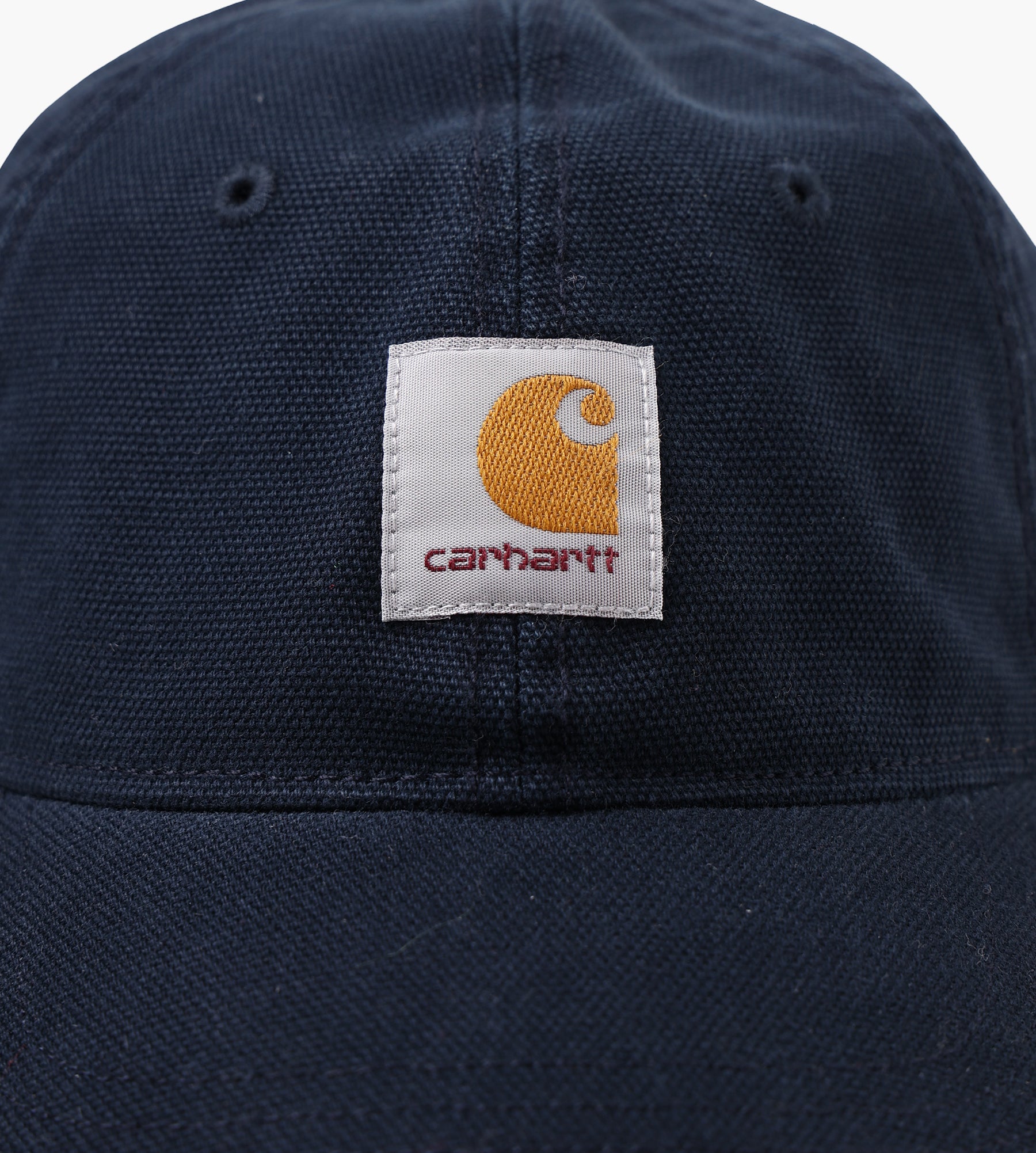 The Carhartt WIP Selby Canvas Cap in Deep Night Navy Stone Washed is crafted from 100% cotton, offering a soft yet durable construction. Its garment-washed finish lends a lived-in texture, while the unstructured six-panel design and firm curved peak strike a balance between utility and understated style. A square label on the front nods to Carhartt WIP's workwear heritage, anchoring the cap in its authentic roots.