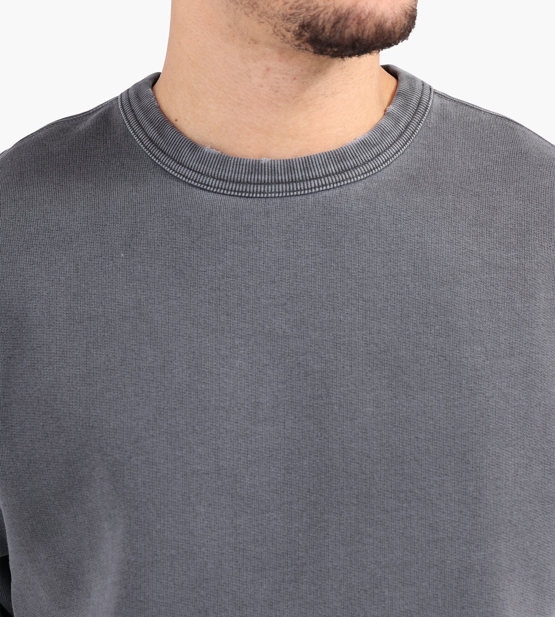 The Carhartt WIP Torion Sweat in Black Grind Wash is crafted from 100% cotton, offering a soft yet durable texture ideal for everyday wear. Its loose-fit silhouette is complemented by ribbed cuffs, waistband, and collar, ensuring a relaxed yet structured shape that holds up over time.