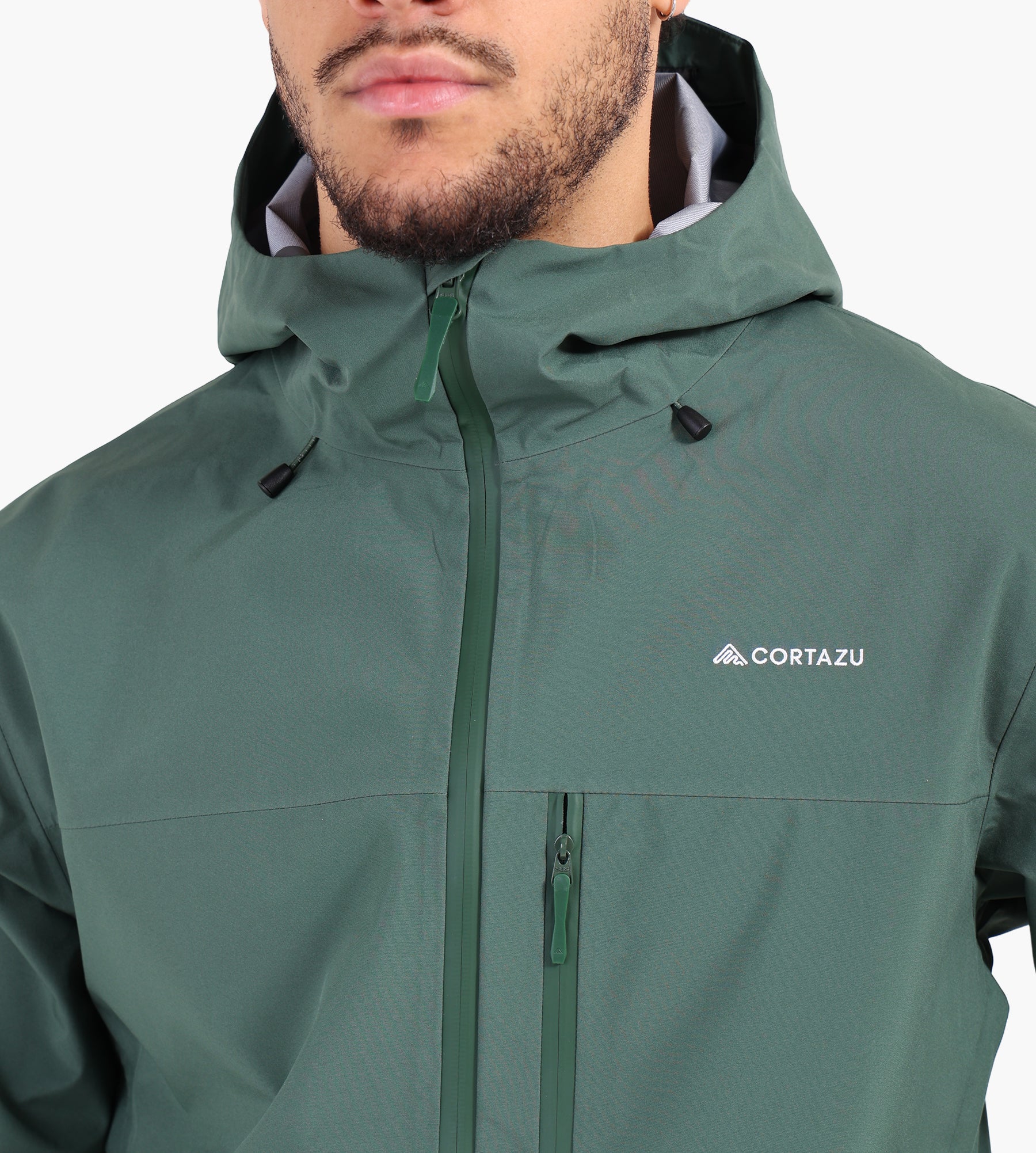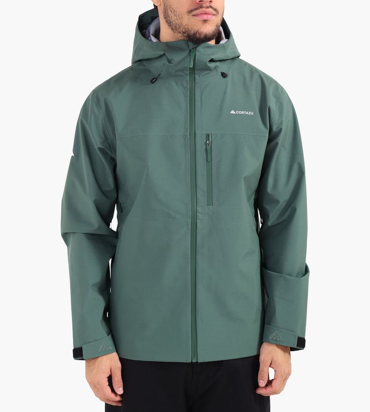 The Cortazu x Baskèts Limited Edition Hardshell Jacket in Dark Green is crafted from 100% recycled premium fabrics, combining sustainability with performance. Engineered with a waterproof rating of 30,000mm, this jacket delivers robust protection against heavy rain while maintaining breathability and windproof reliability for dynamic conditions.