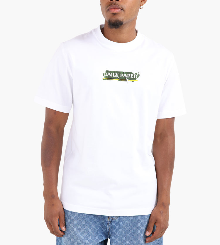 The Daily Paper Sticker T-Shirt in White is a versatile graphic white tee crafted for everyday ease. Its crisp white base provides a clean canvas, while the bold graphic detail adds a modern edge, reflecting the brand's signature streetwear aesthetic. Designed with a soft, breathable fabric, it delivers comfort for all-day wear.