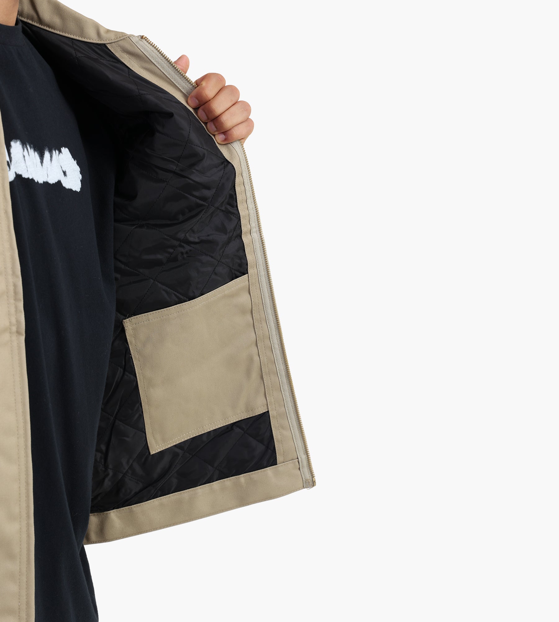Crafted from a durable 65% polyester and 35% cotton twill shell, the Dickies Lined Eisenhower Insulated Jacket offers a structured yet lightweight feel. Its quilted nylon taffeta lining ensures warmth without bulk, while a brass zipper lends durability. Originally designed for American pilots during WWII, this jacket carries a legacy of resilience and practicality into modern wardrobes.