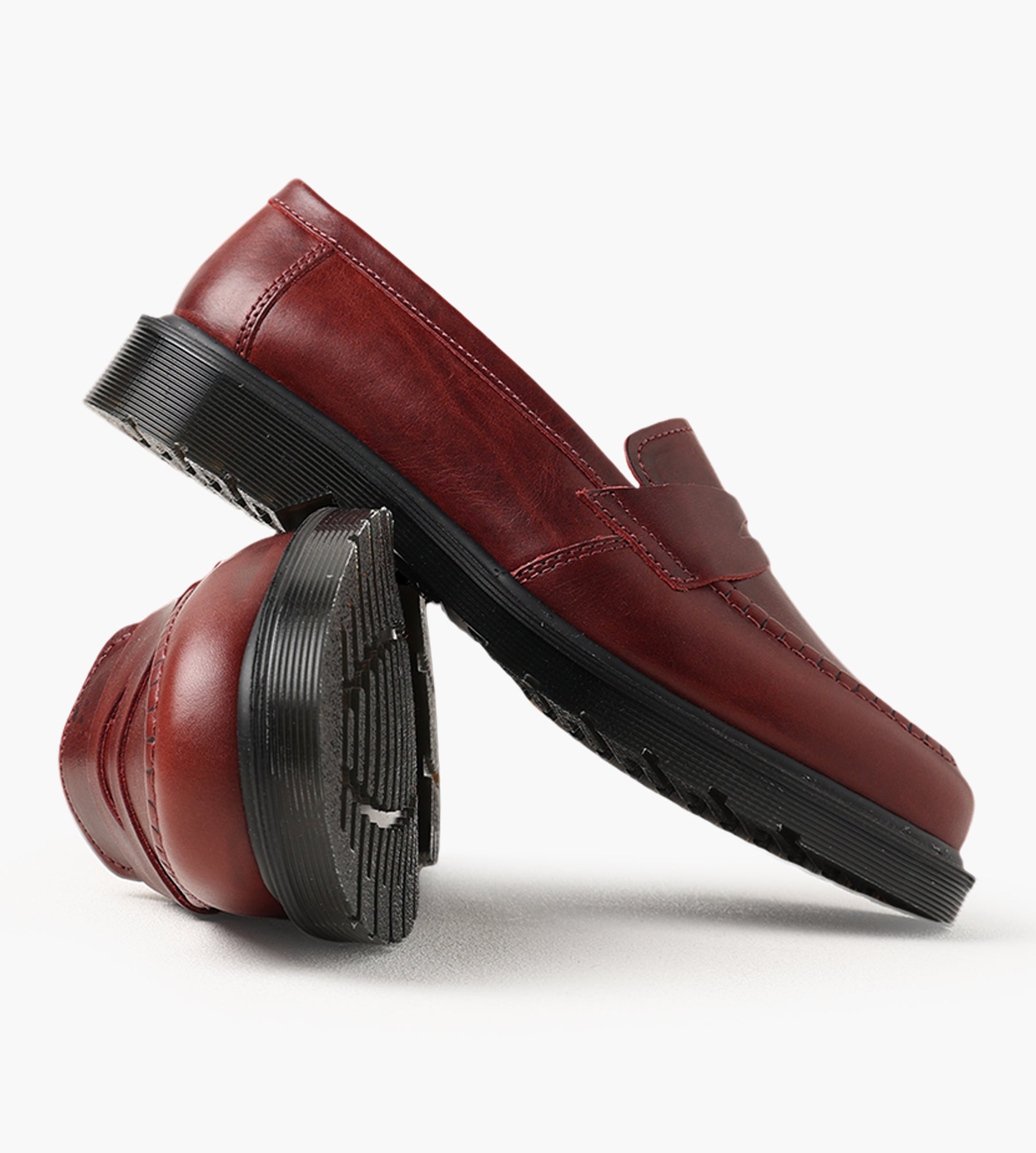 The Dr. Martens Delapré Penny Loafer in Burgundy Classic Calf is crafted from smooth, polished leather, delivering a timeless silhouette that balances refinement with durability. Its rich burgundy tone and classic penny strap detail elevate the design, making it a versatile choice for varied occasions.