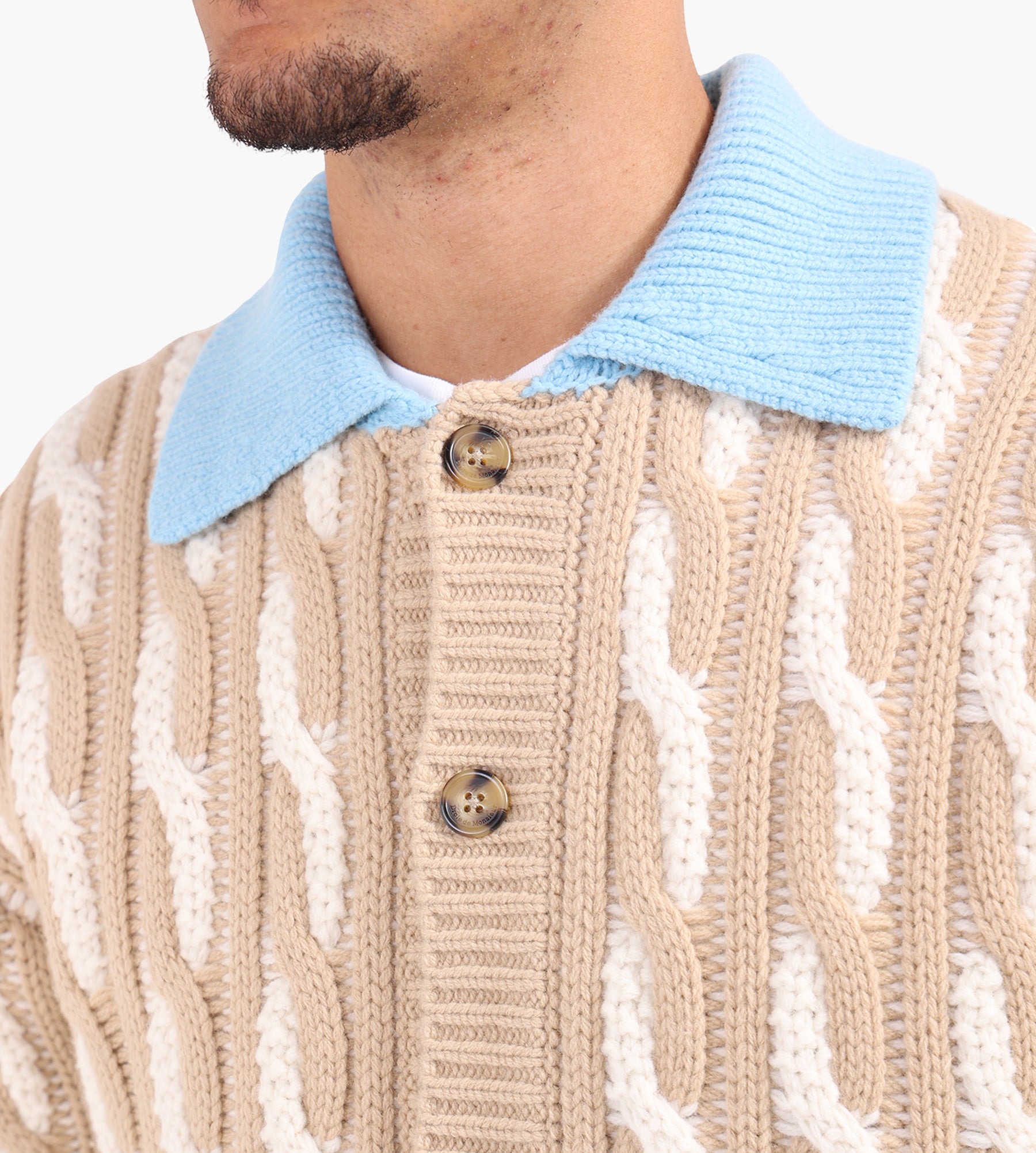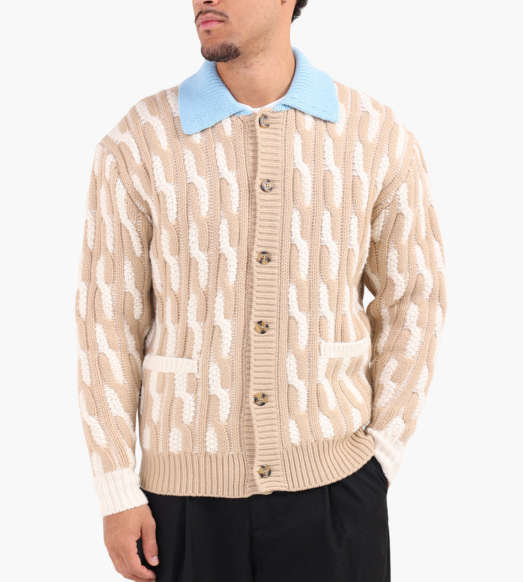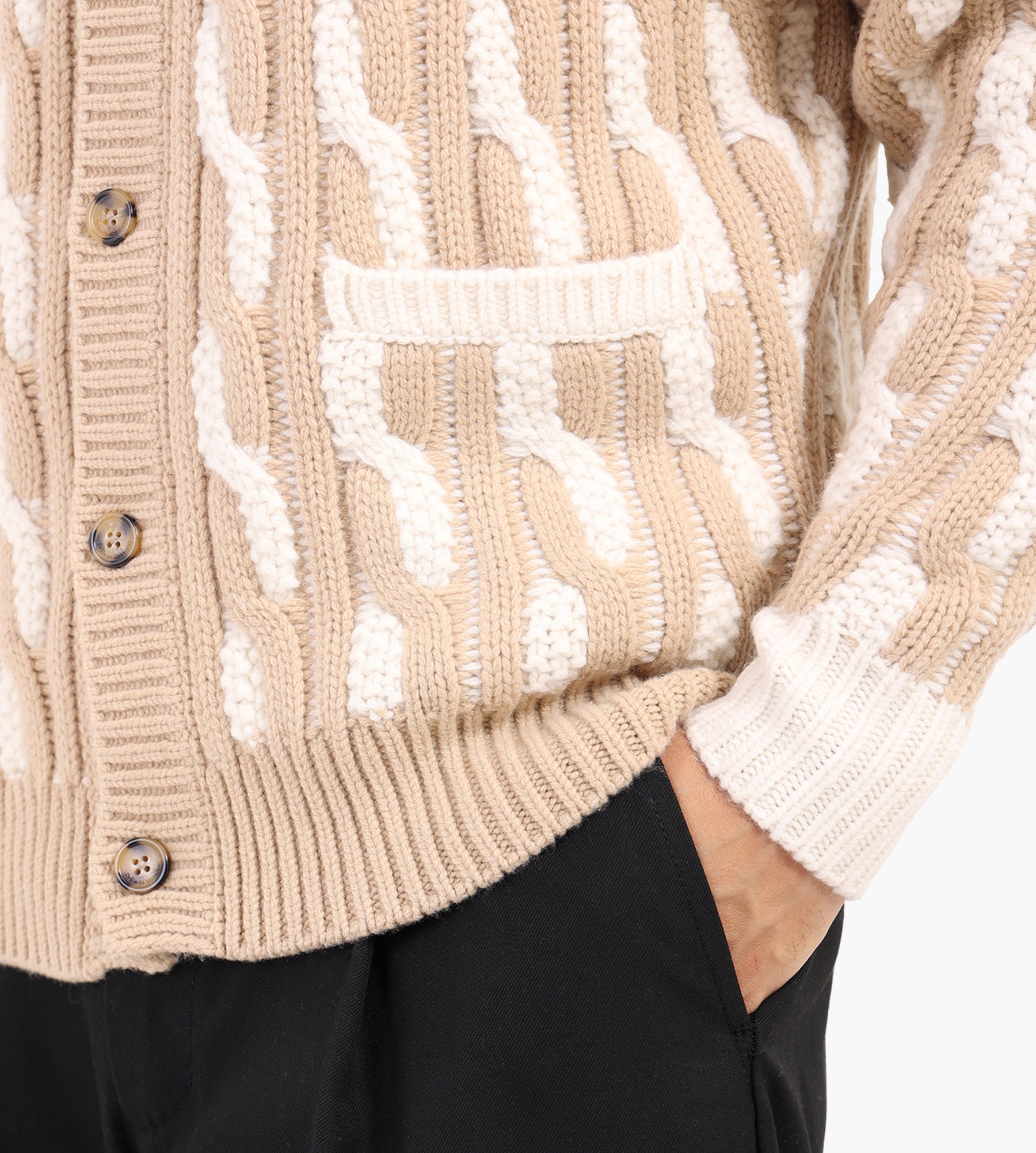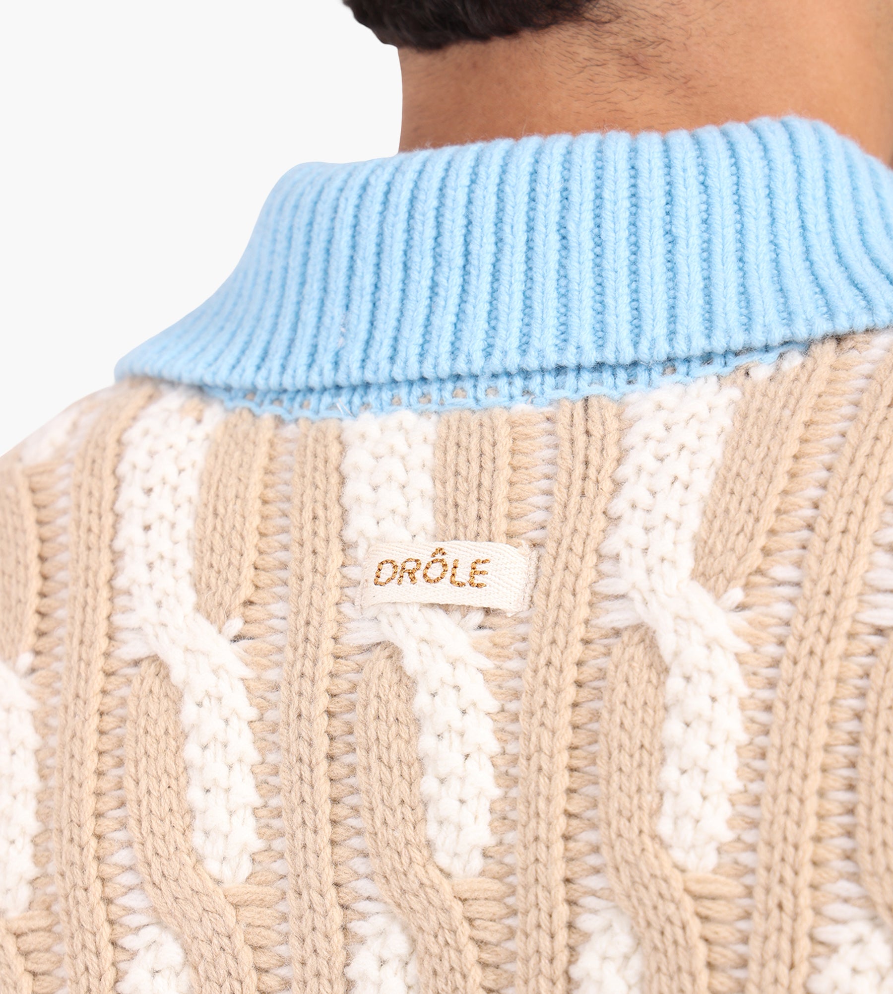 Drôle de Monsieur Le Cardigan Torsades Bicolore Off White