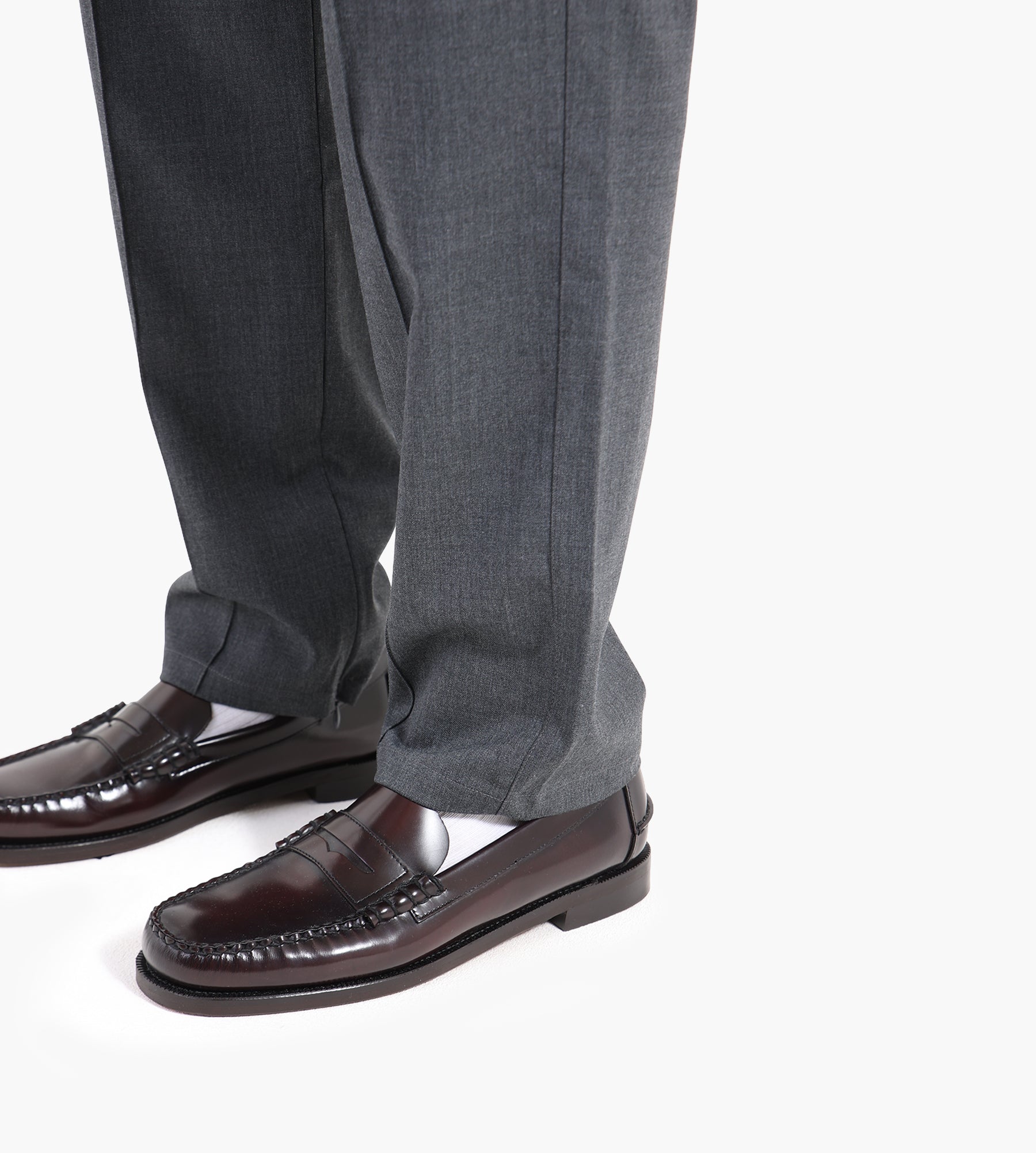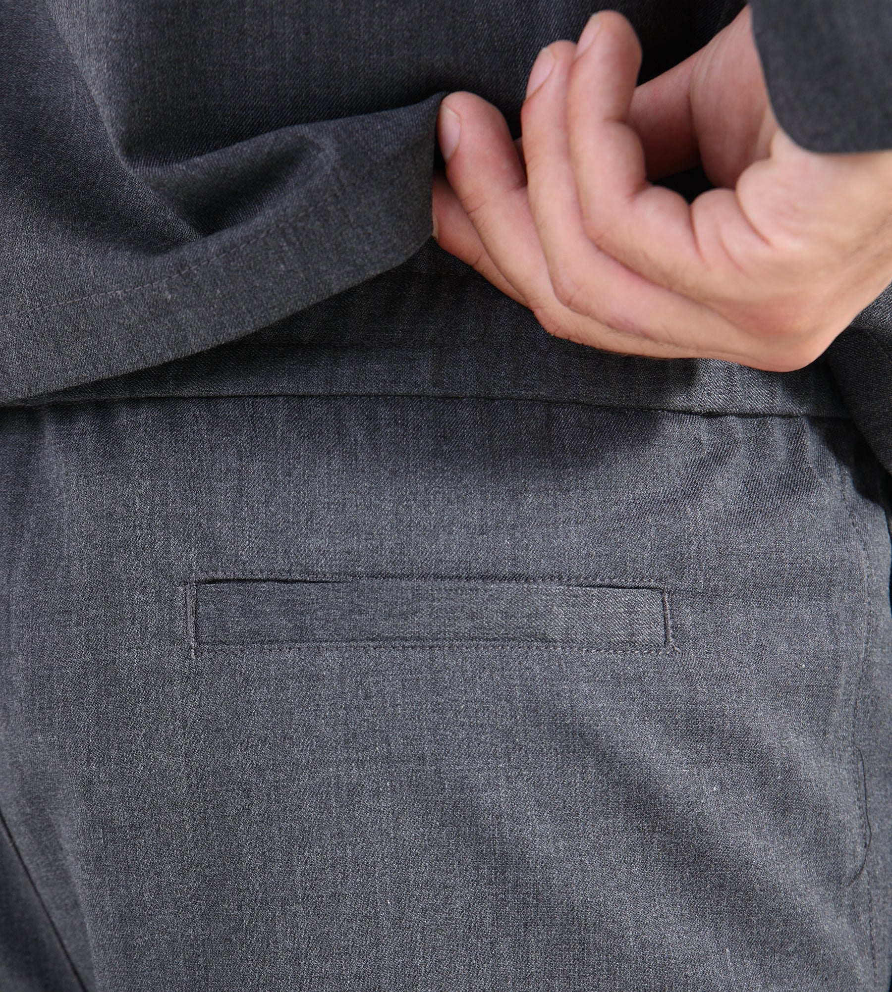 The Filling Pieces Coach Pants in Gray are crafted from a refined blend of polyester, wool, and elastane, offering a balance of durability, warmth, and stretch. The twill weave enhances the fabric's subtle structure, while the soft drape ensures effortless movement and a tailored aesthetic.