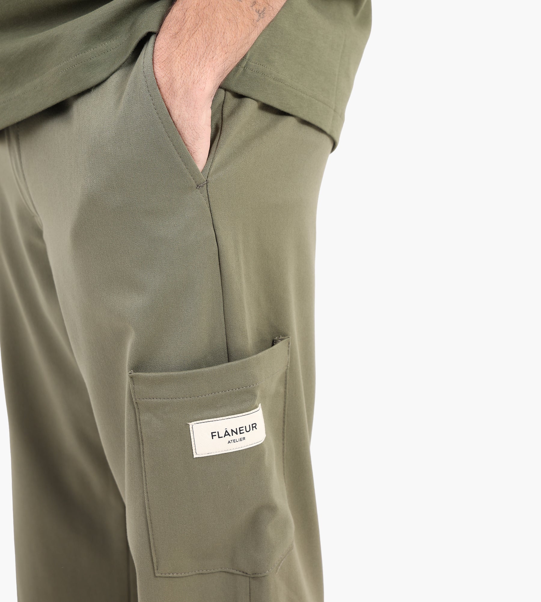 The Flâneur Atelier Tailored Trousers in Khaki are crafted from a blend of 64% PES, 32% VIS, and 4% LYC, delivering a refined balance of structure and comfort. Designed with a tailored silhouette, these trousers are elevated by the signature FLÂNEUR atelier patch, inset slant pockets, and a functional cargo patch pocket featuring a branded label for a subtle utilitarian nod.