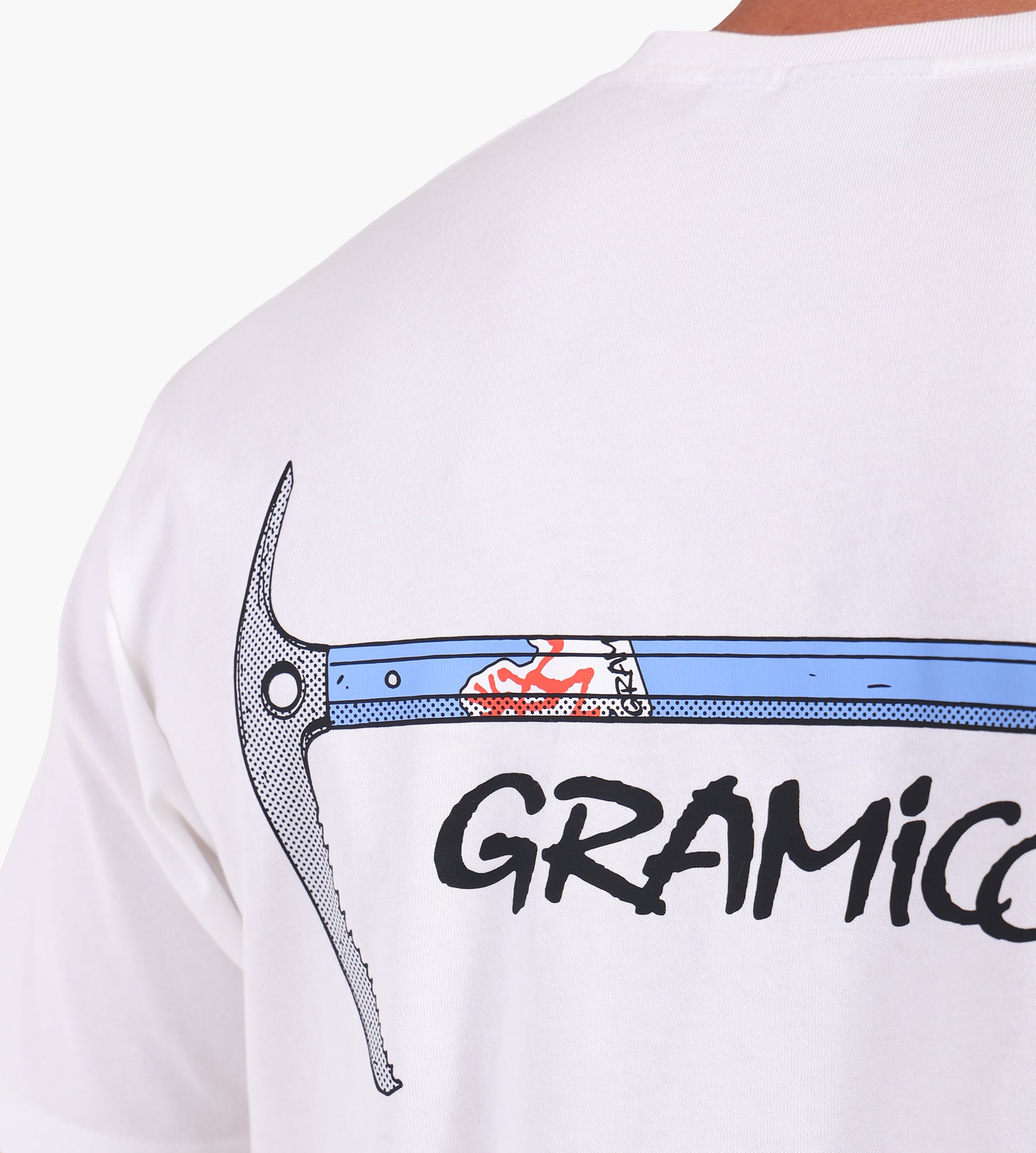 - White T-shirt with graphic ice ax print