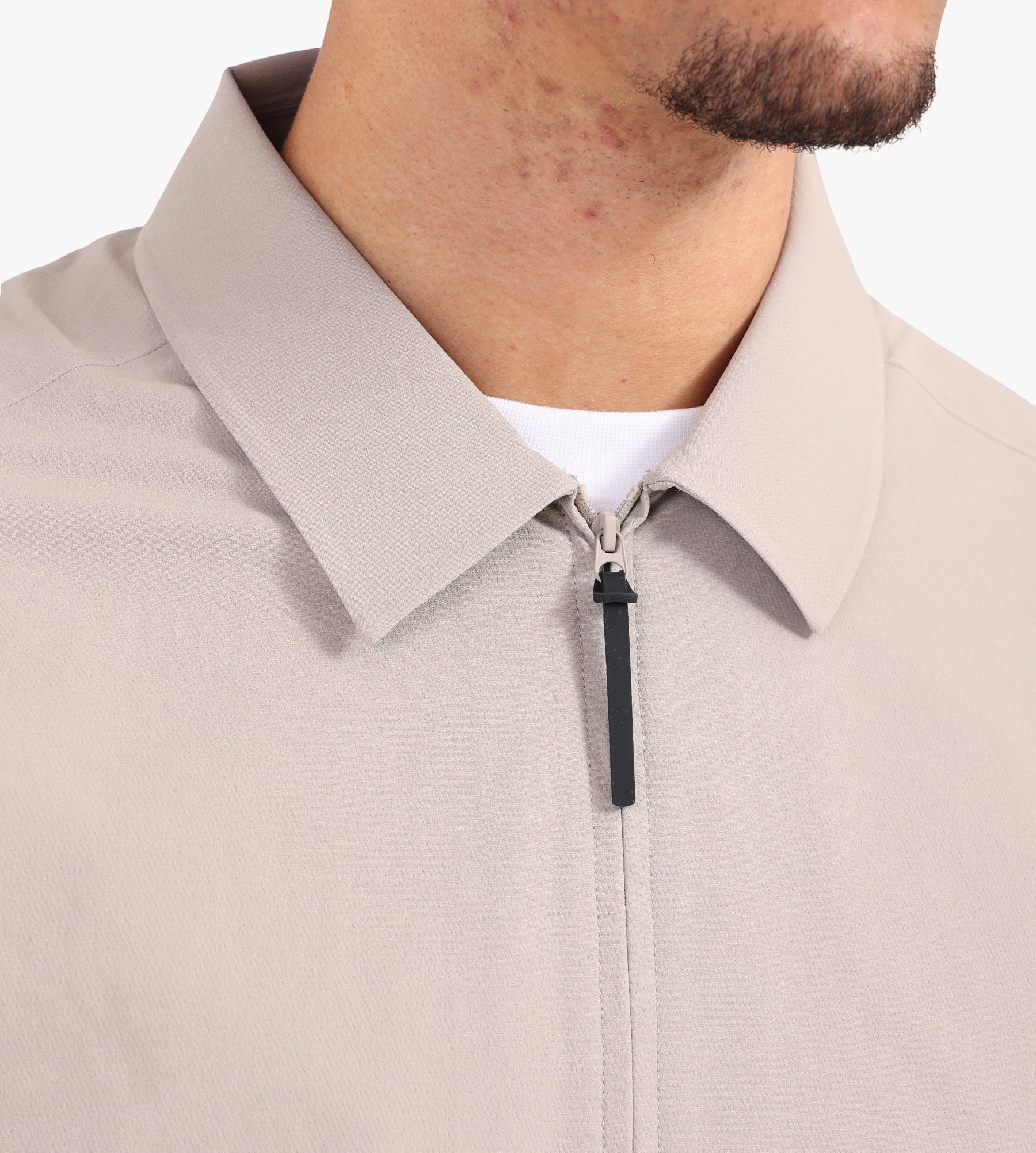The Hiking Patrol Edge Softshell Technical Shirt in Beige is crafted from a robust 320D pearl point nylon blend with 4-way stretch, ensuring durability and flexibility. A water-repellent finish enhances its performance in unpredictable conditions, while taped seams add longevity to the design. The regular-fit silhouette is anchored by a two-way YKK front zip, balancing utility with ease of movement.