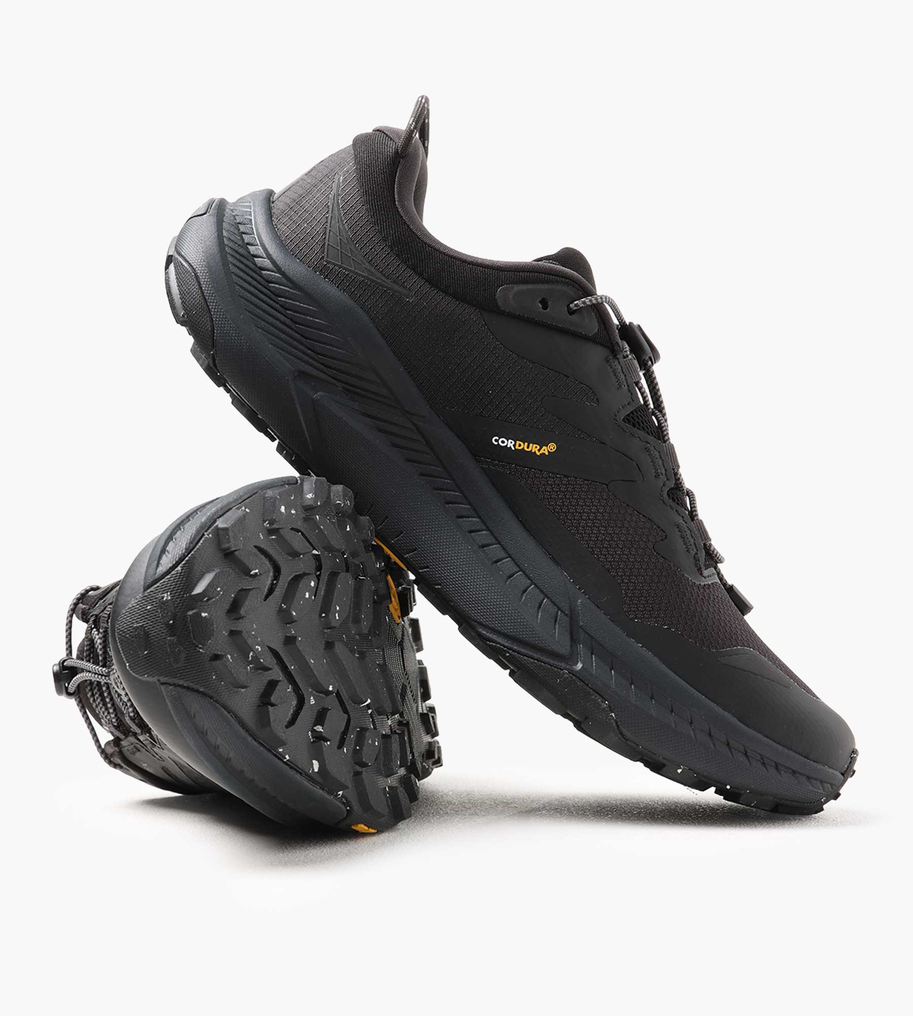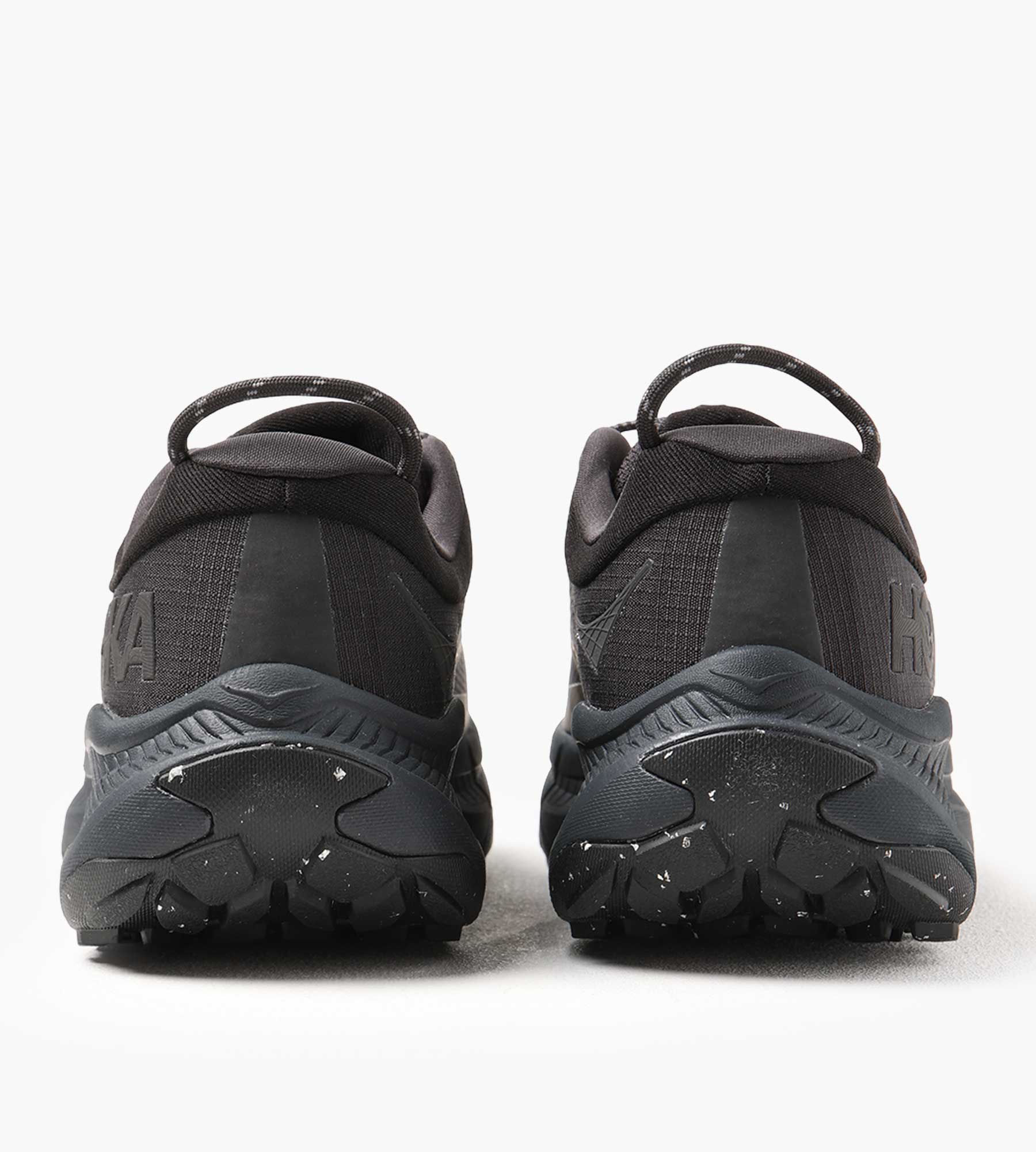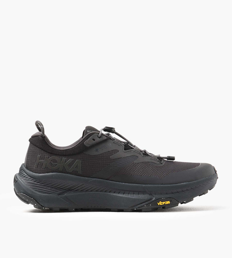 The Hoka Transport GTX in Black/Black combines sleek aesthetics with all-weather functionality. Constructed with a GORE-TEX membrane, these sneakers ensure waterproof protection while maintaining breathability. The lightweight engineered mesh upper enhances durability and flexibility, making it a versatile choice for urban and outdoor environments.