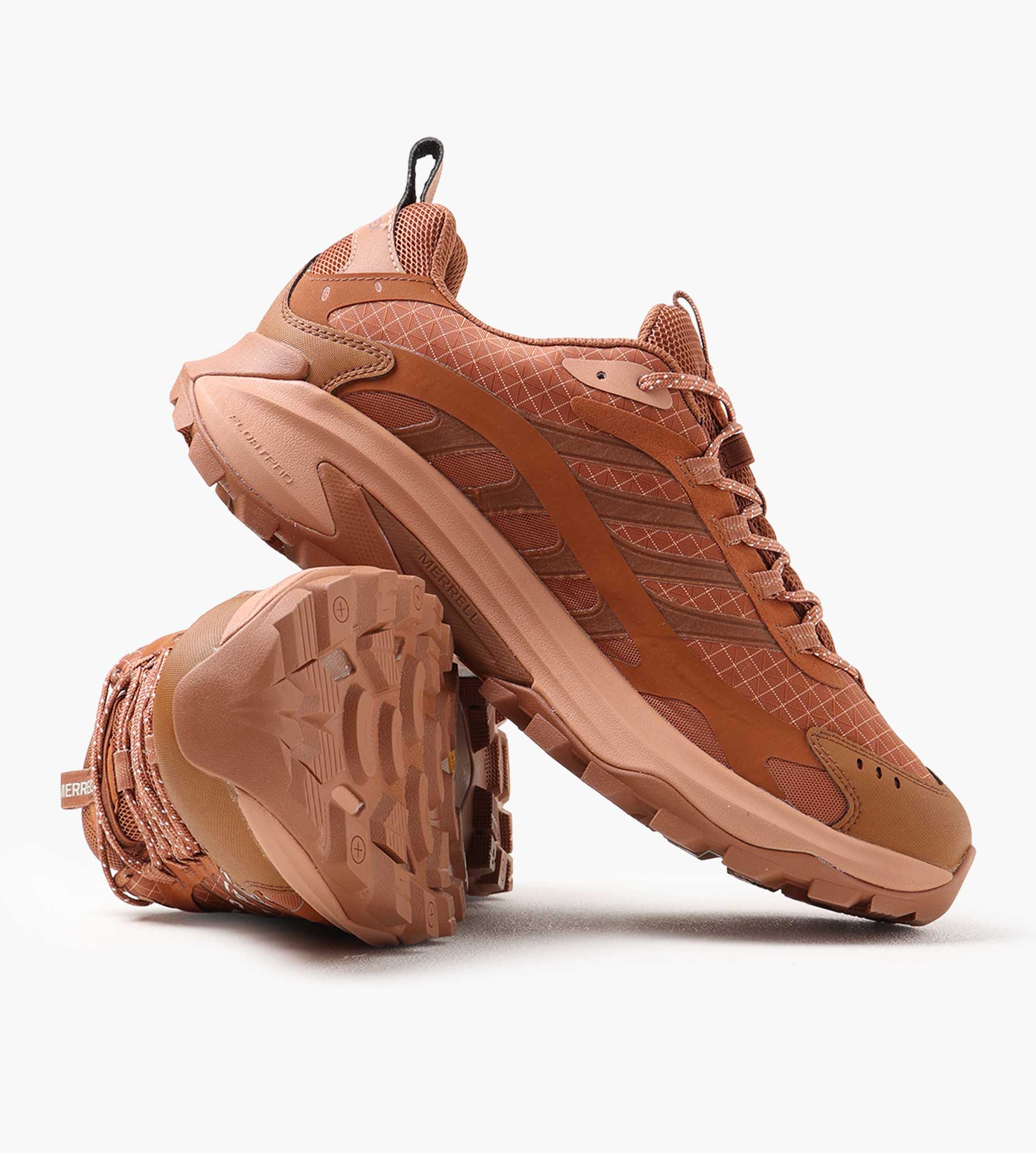 The Merrell 1TRL Moab Speed 2 GTX in Nutshell combines technical precision with robust materials for outdoor performance. Its GORE-TEX waterproof membrane ensures reliable weather protection while maintaining breathability, making it an indispensable choice for varied terrains. The earthy brown tone blends seamlessly with natural landscapes, anchoring its utility in trail environments.