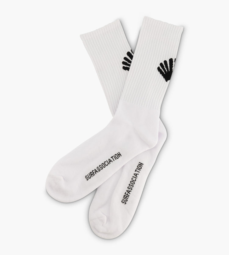 The New Amsterdam Surf Association 25 Logo Socks in white combine minimalist design with everyday utility. Featuring the bold "25" logo, these socks offer a clean, graphic touch that aligns with the brand's understated aesthetic. Their casual silhouette ensures versatility across a range of daily settings.