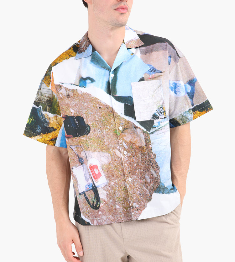 The WIJK SHIRT MEMORY LANE by New Amsterdam Surf Association is crafted from 100% cotton twill, offering a structured yet breathable feel. Its seasonal allover photo print captures the brand’s surf-inspired ethos, while the hidden button-up closure maintains a clean, streamlined look. A left chest pocket, accented with shell embroidery, adds a subtle nod to coastal elements.