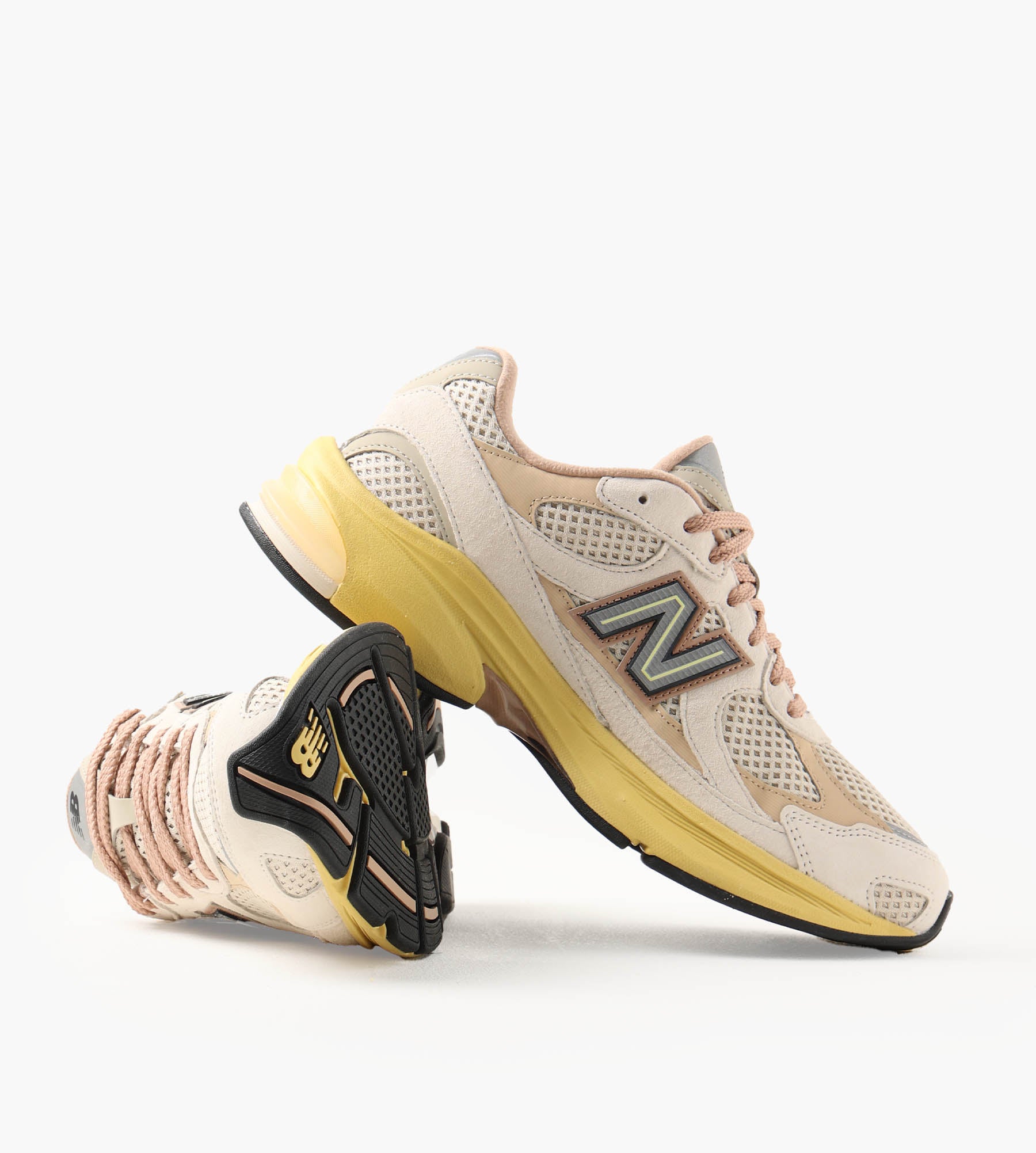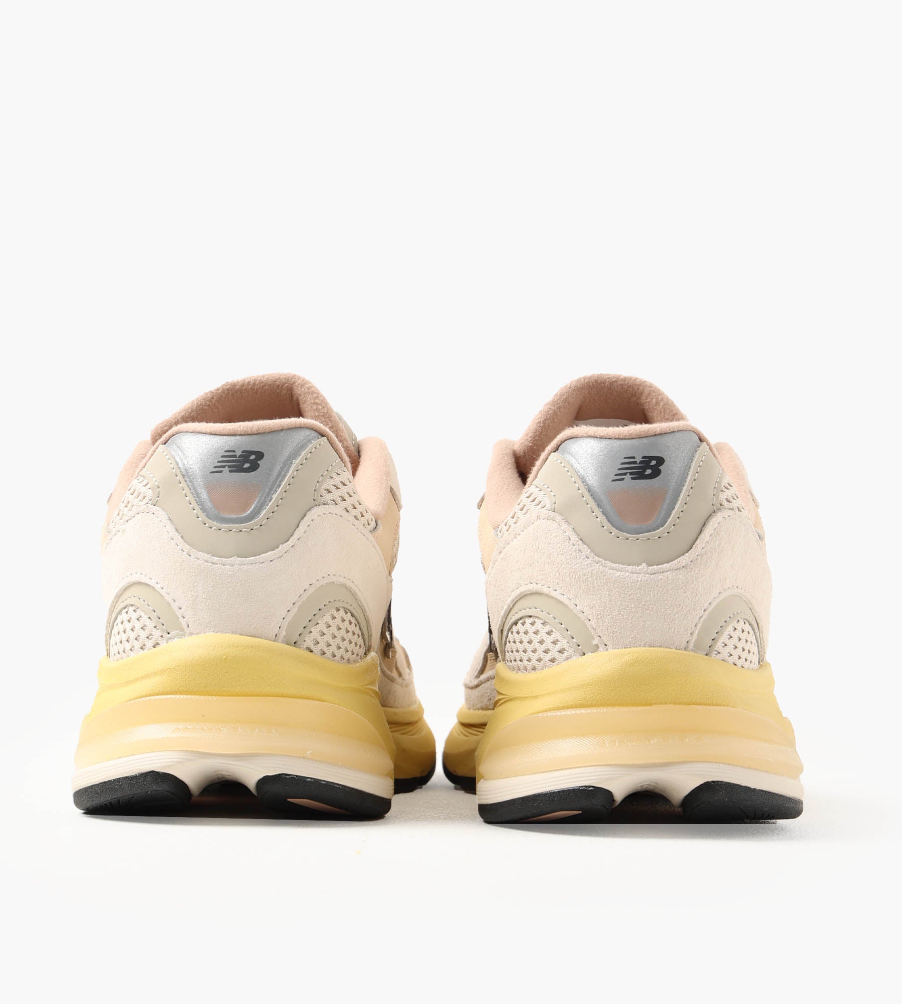 The New Balance 2010 Sneakers in Linen with Desert Clay combine a diamond-knit mesh upper with nubuck and synthetic overlays, offering a breathable yet structured design. Crafted with precision, the pigskin and leather detailing elevate the tactile experience, while reflective accents enhance visibility in low-light conditions. The molded 'N' logo and translucent TPU Stability Web shank at the midfoot underscore the brand's signature blend of performance and style.