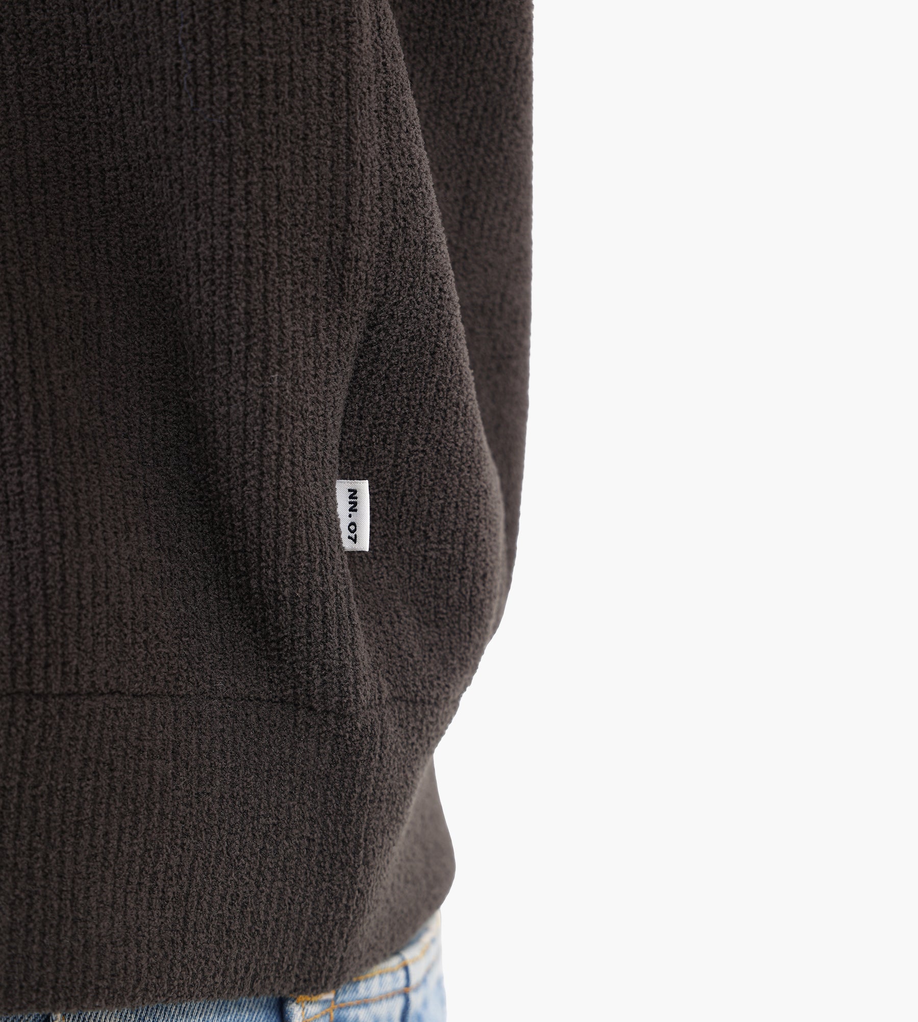 The NN.07 Danny Full-Zip Sweater in Dark Army is constructed from a heavyweight ribbed knit blend of 78% polyester and 22% polyamide. This material offers a structured yet flexible feel, perfect for layering or standalone wear. The crewneck and long sleeves enhance its timeless silhouette, while the pull-on design ensures effortless functionality.