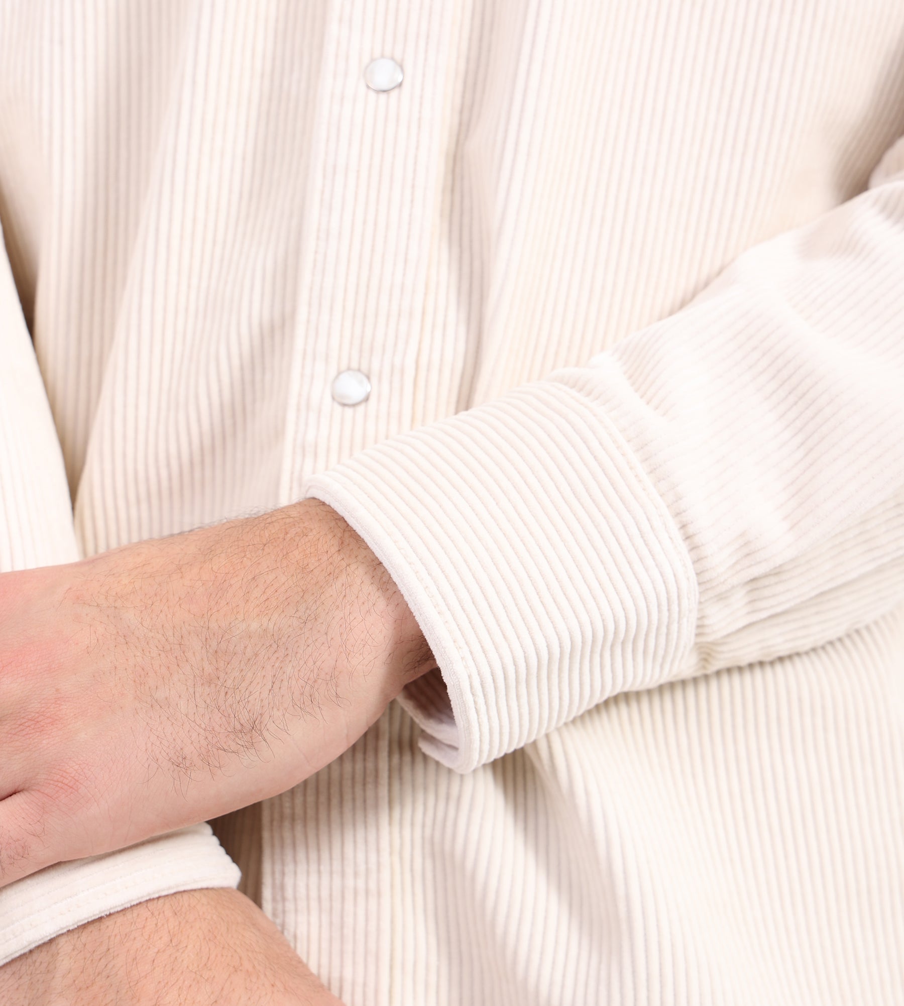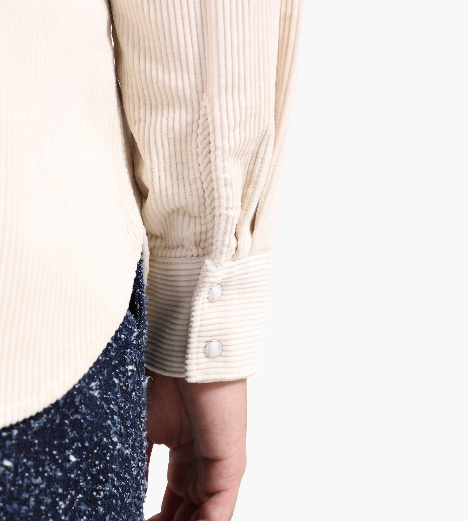 The NN.07 Ricky Overshirt 50004 in Ivory is crafted from a midweight cotton twill, offering a soft yet structured hand. Its clean, minimalist design is punctuated by tonal buttons and a pointed collar, making it a versatile layer for transitional weather.