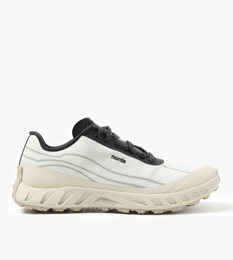 Vibram® Megagrip outsoles and LiteBase® midsoles provide superior grip and lightweight cushioning, ensuring stability and propulsion on varied surfaces. Whether tackling ultramarathons or navigating daily adventures, these sneakers offer a terrain-adaptive fit and a propulsive feel, embodying Norda’s commitment to performance-driven sustainability.