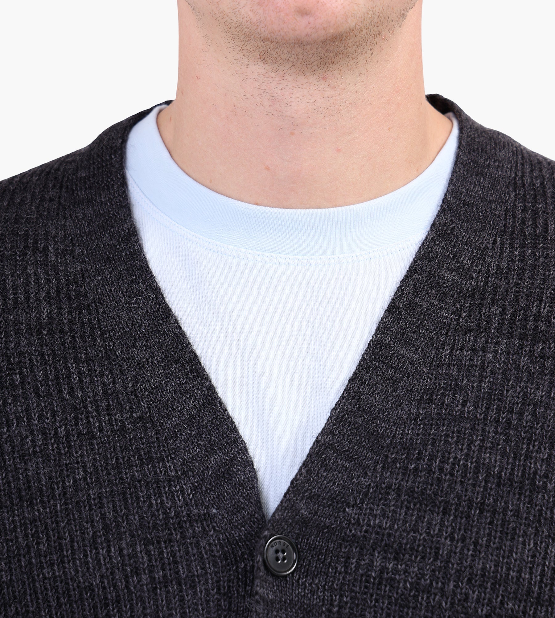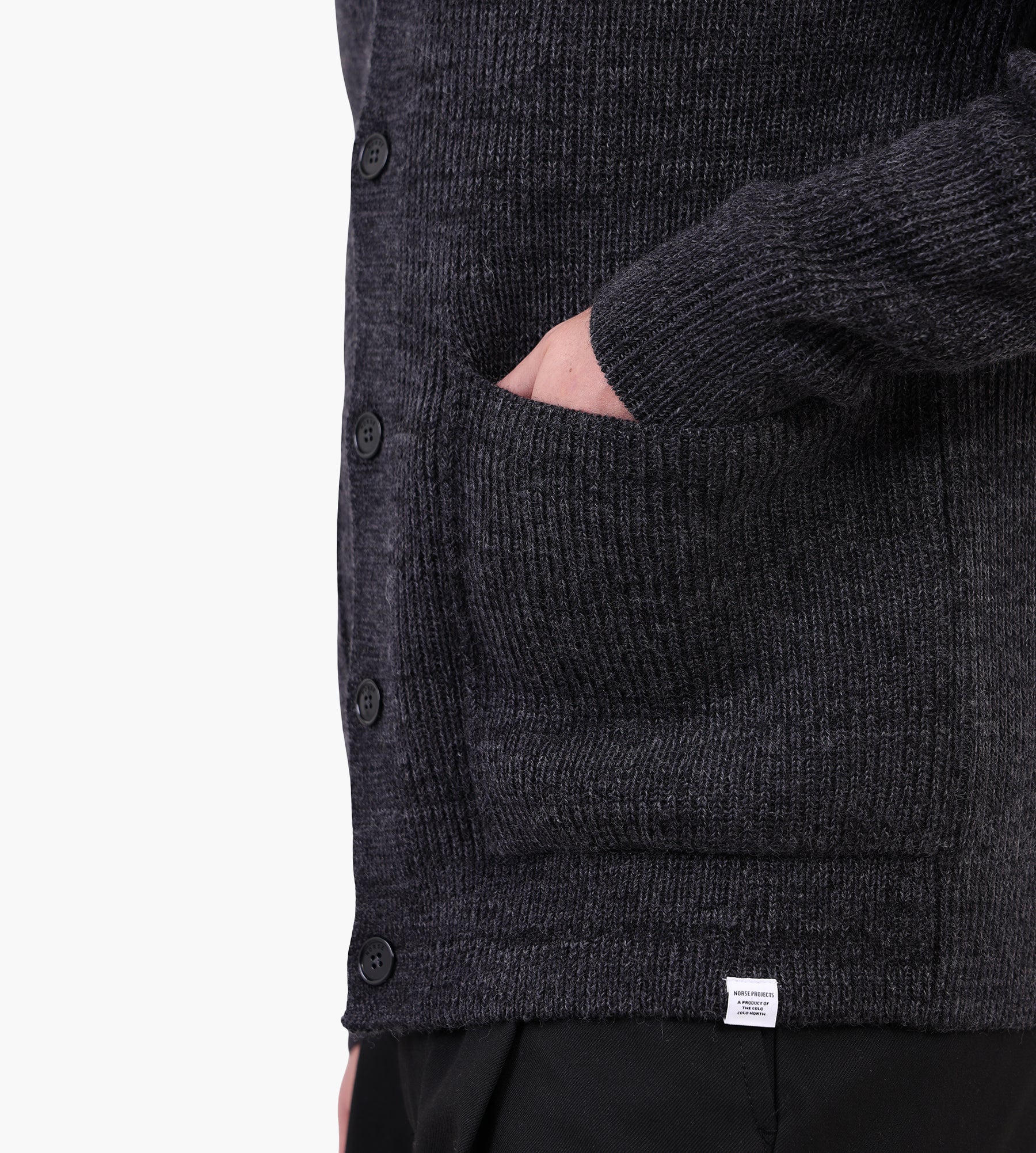 Norse Projects Loki Wool Cotton Rib Cardigan Dark Grey Melange
