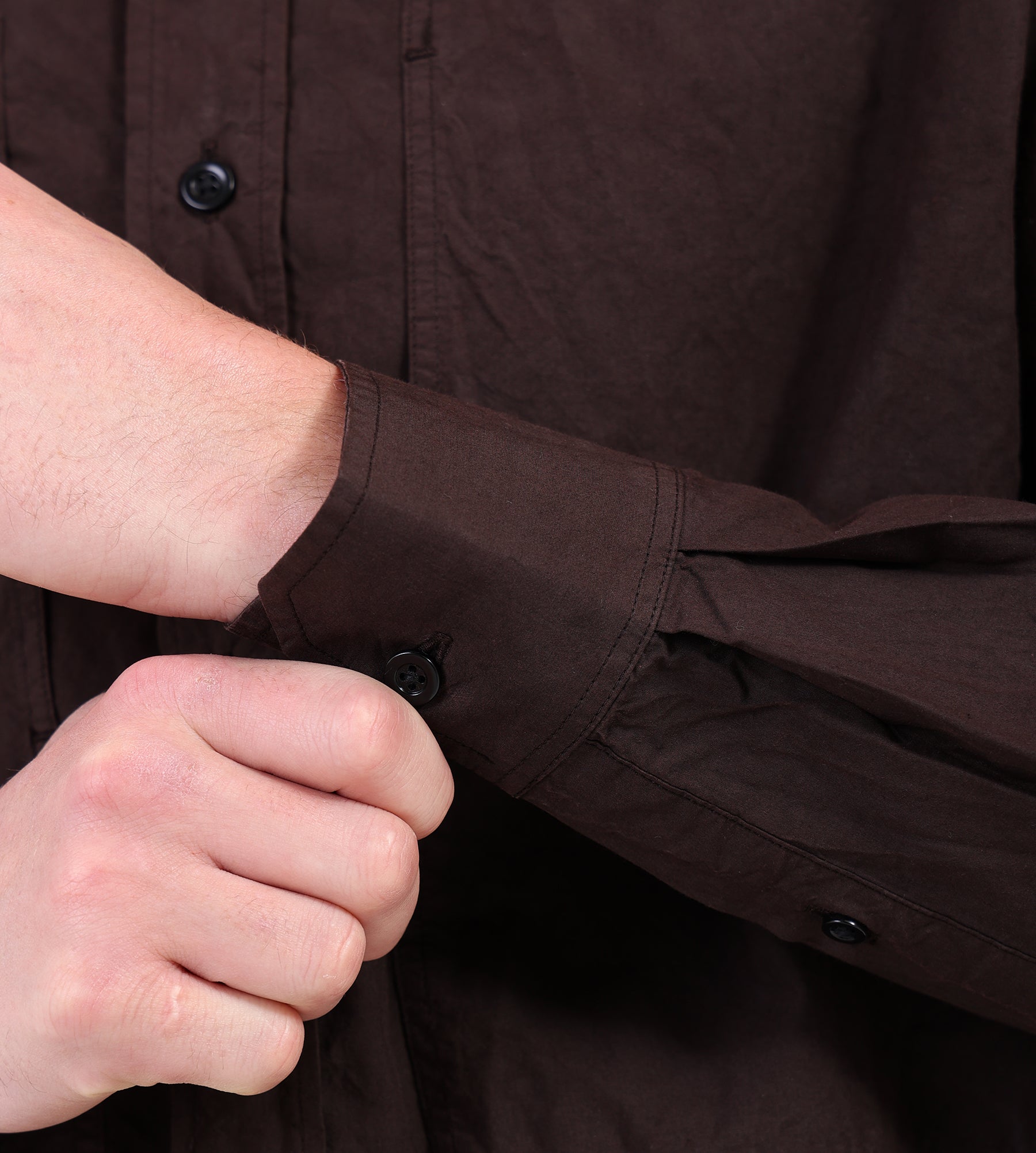 The Norse Projects Ole Fatigue Cotton Tencel Shirt in Espresso combines a 50% Cotton, 50% Tencel blend for a crisp yet breathable feel. Crafted from Italian poplin, the fabric offers a soft, garment-dyed finish that enhances its rich, earthy tone. Designed for versatility, this piece transitions seamlessly between casual and refined settings.