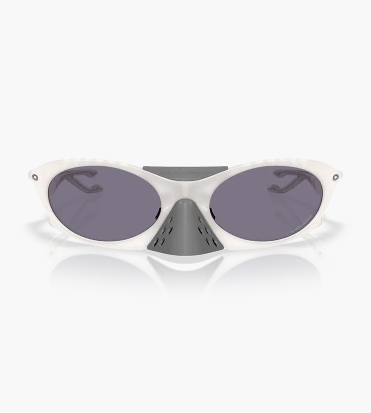 The Oakley Plantaris Sunglasses in Matte Vapor combine a lightweight white frame with advanced Prizm Gray lenses, engineered to enhance contrast and clarity in bright conditions. The sleek silhouette and precision-molded construction deliver a balance of durability and comfort, ideal for extended wear.